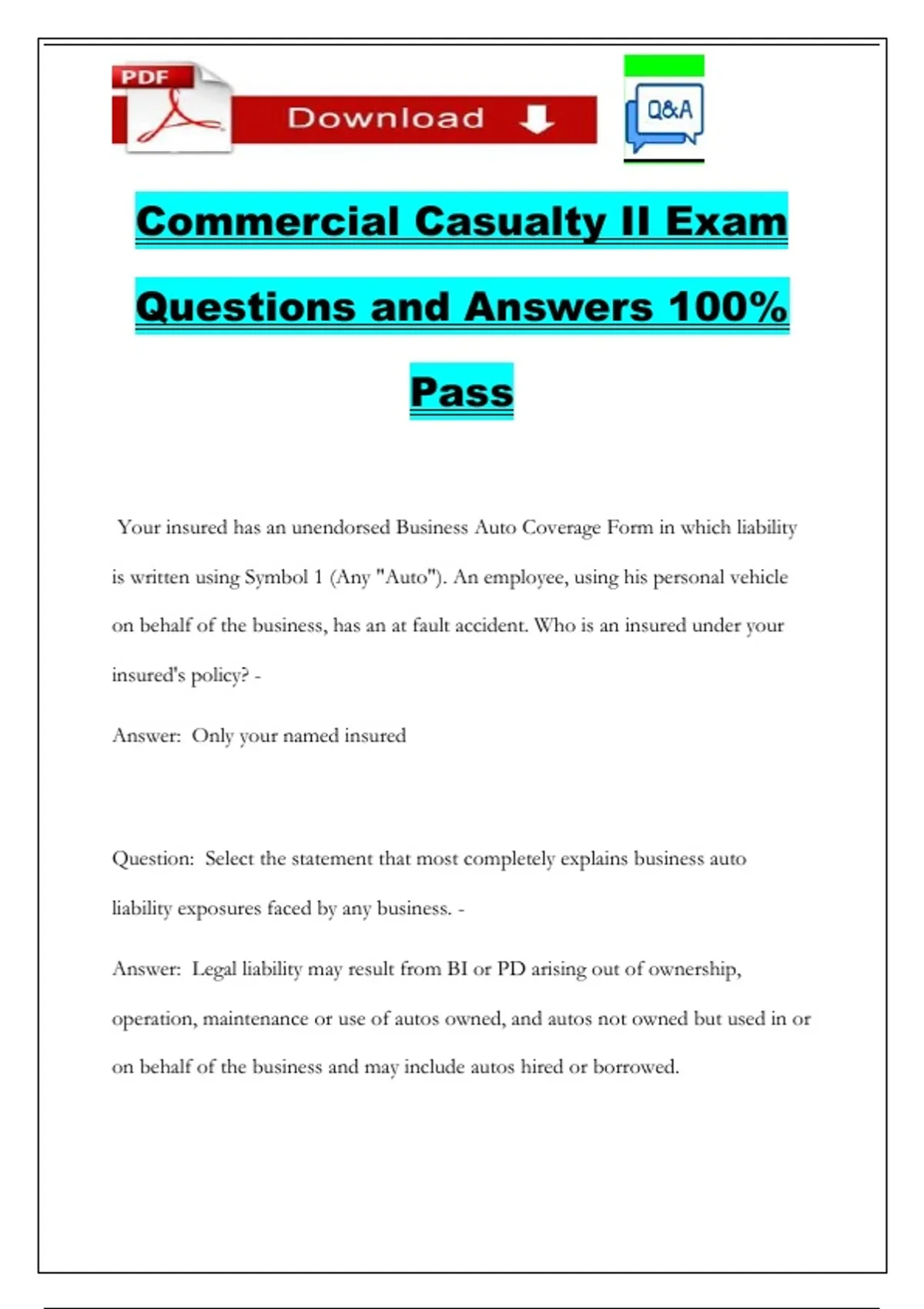 Question: Select the statement that most completely explains business auto