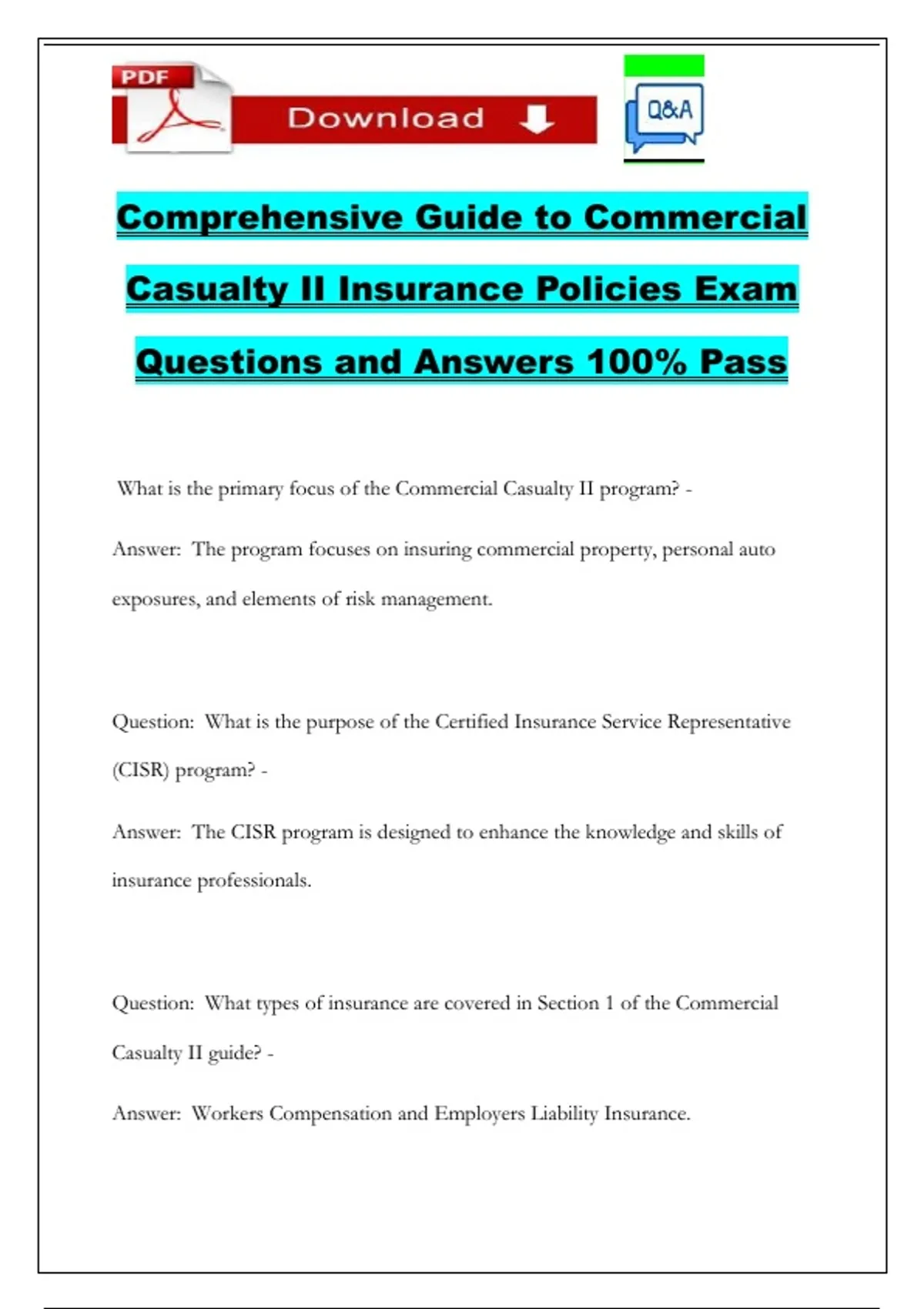 Commercial Casualty – CIC Exam Questions and Answers 100% Pass