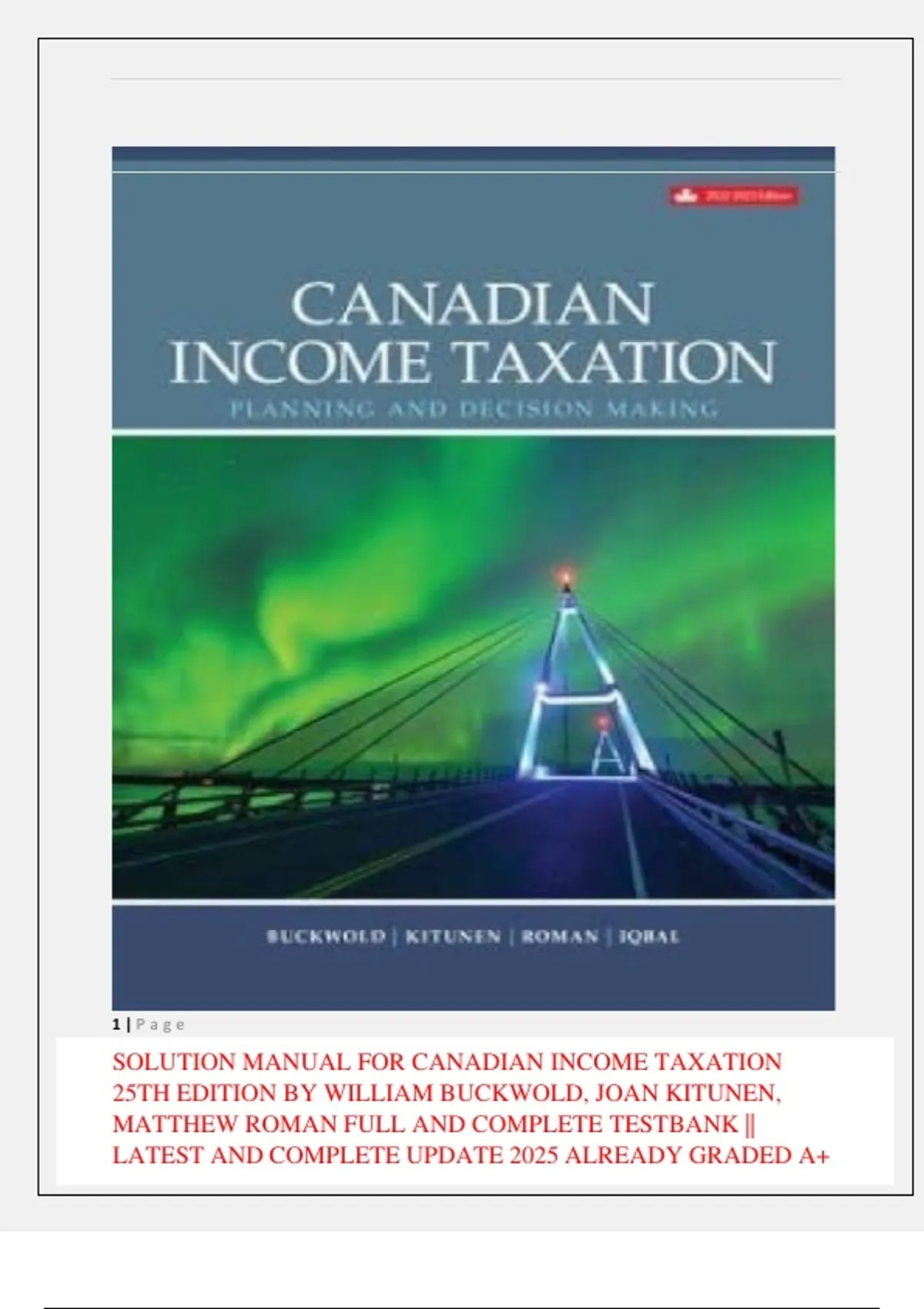 SOLUTION MANUAL FOR CANADIAN INCOME TAXATION 25TH