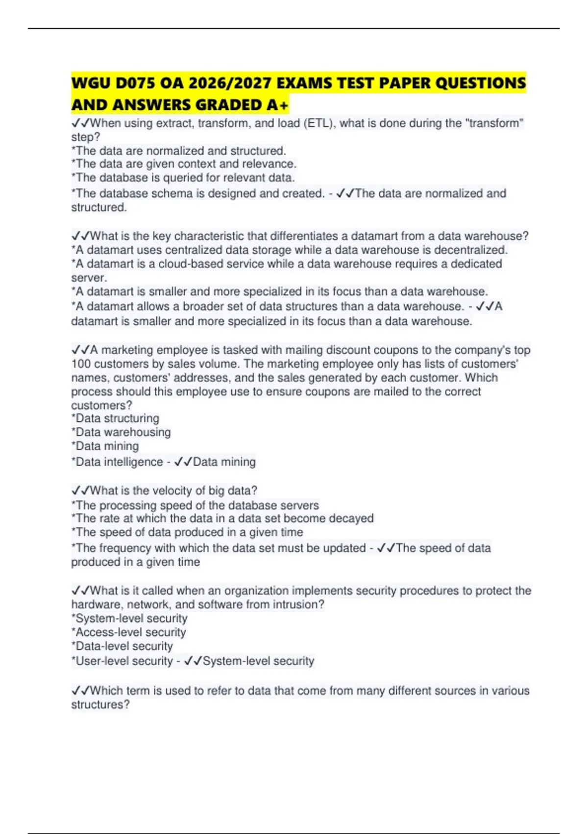 *A datamart allows a broader set of data structures than a data warehouse. - ✔✔A