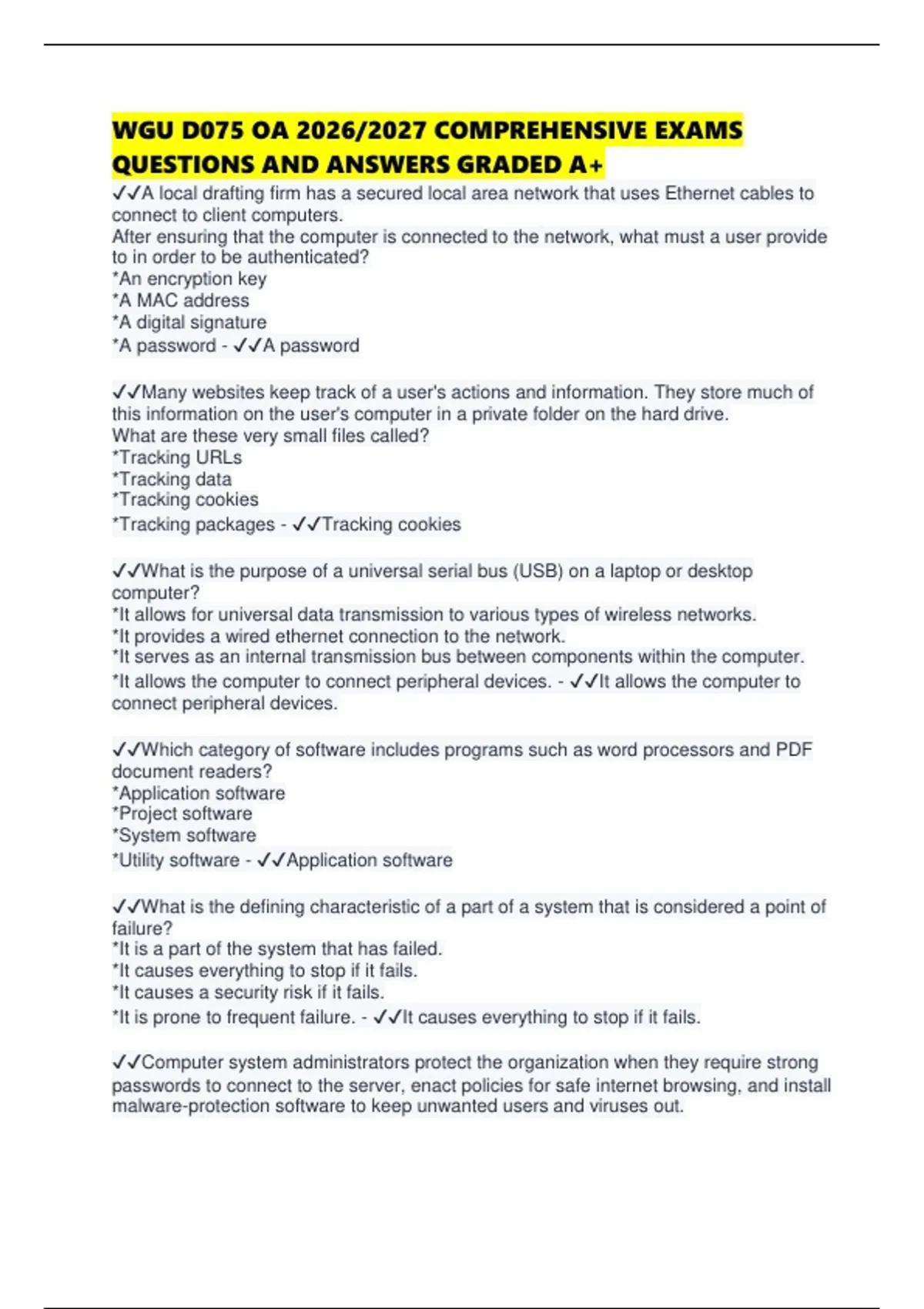 QUESTIONS AND ANSWERS GRADED A+