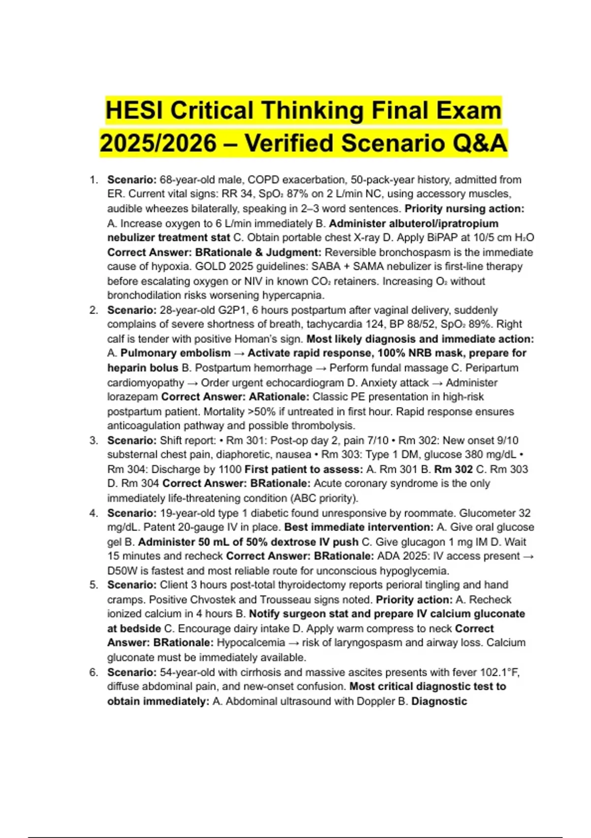 HESI Critical Thinking Final Exam