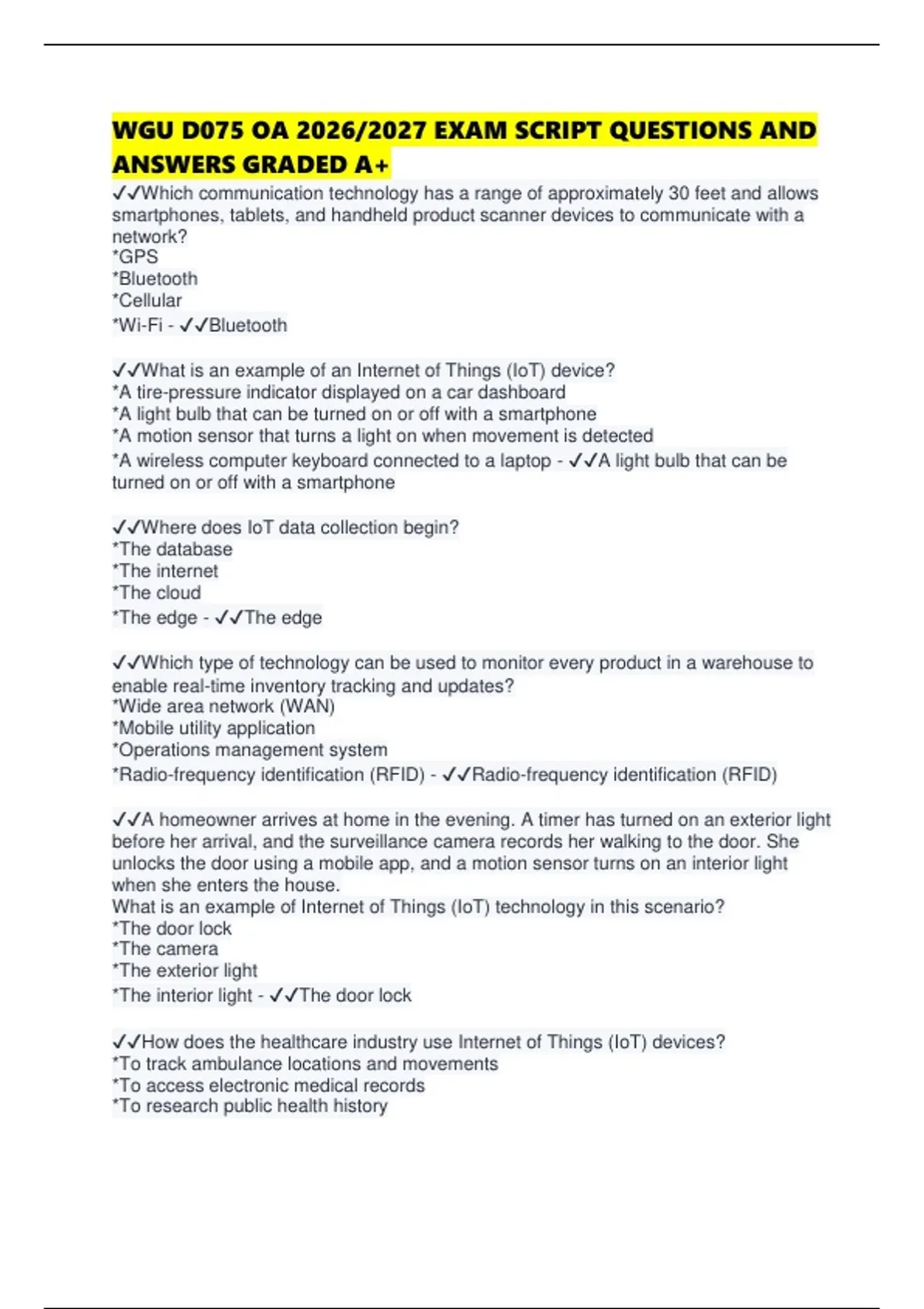 ✔✔What is an example of an Internet of Things (IoT) device?