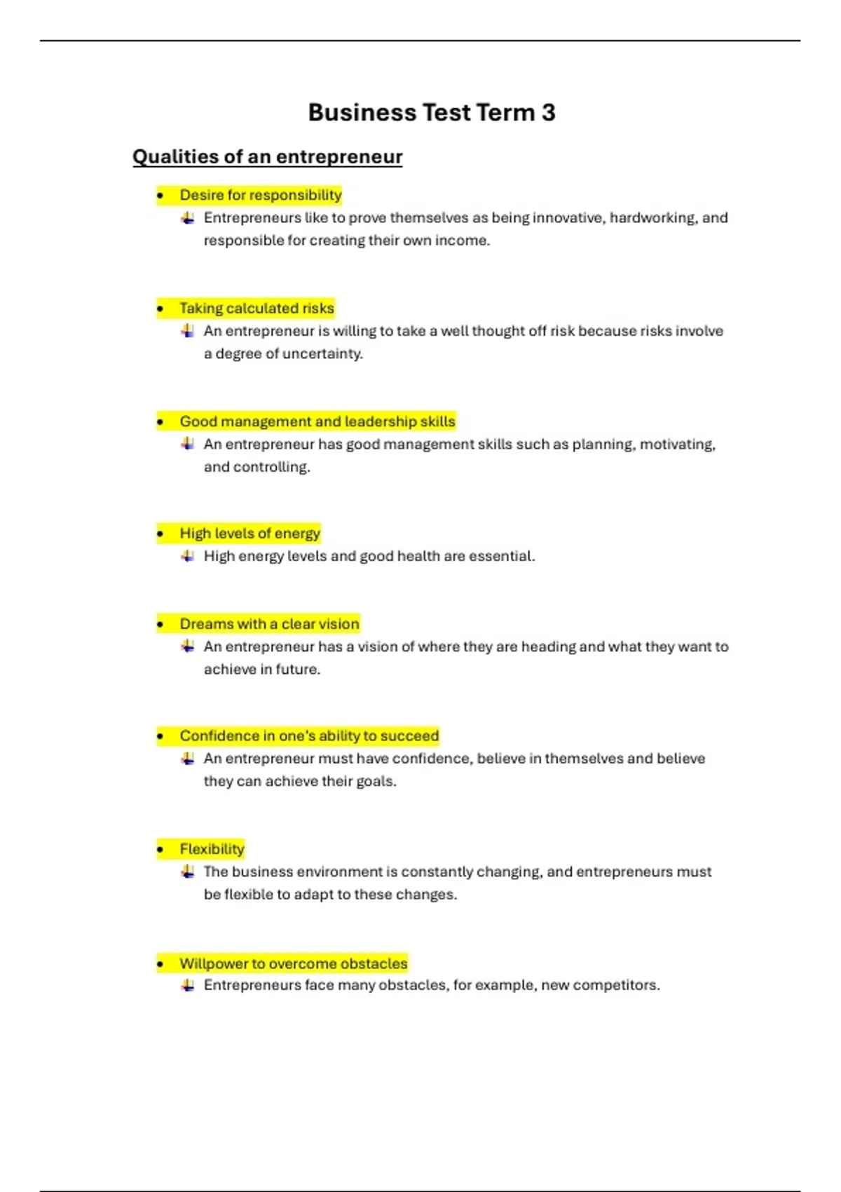 Business Test Term 3