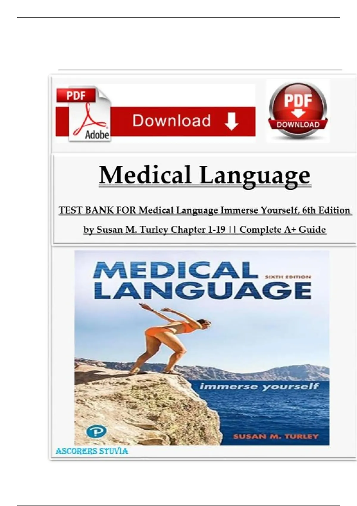 Test Bank For Medical Language: Immerse Yourself, 6th Edition by Susan M. Turley (Pearson, 2024, Isbn: 9780138052997) Chapters 1-19 || Complete A+ Guide.