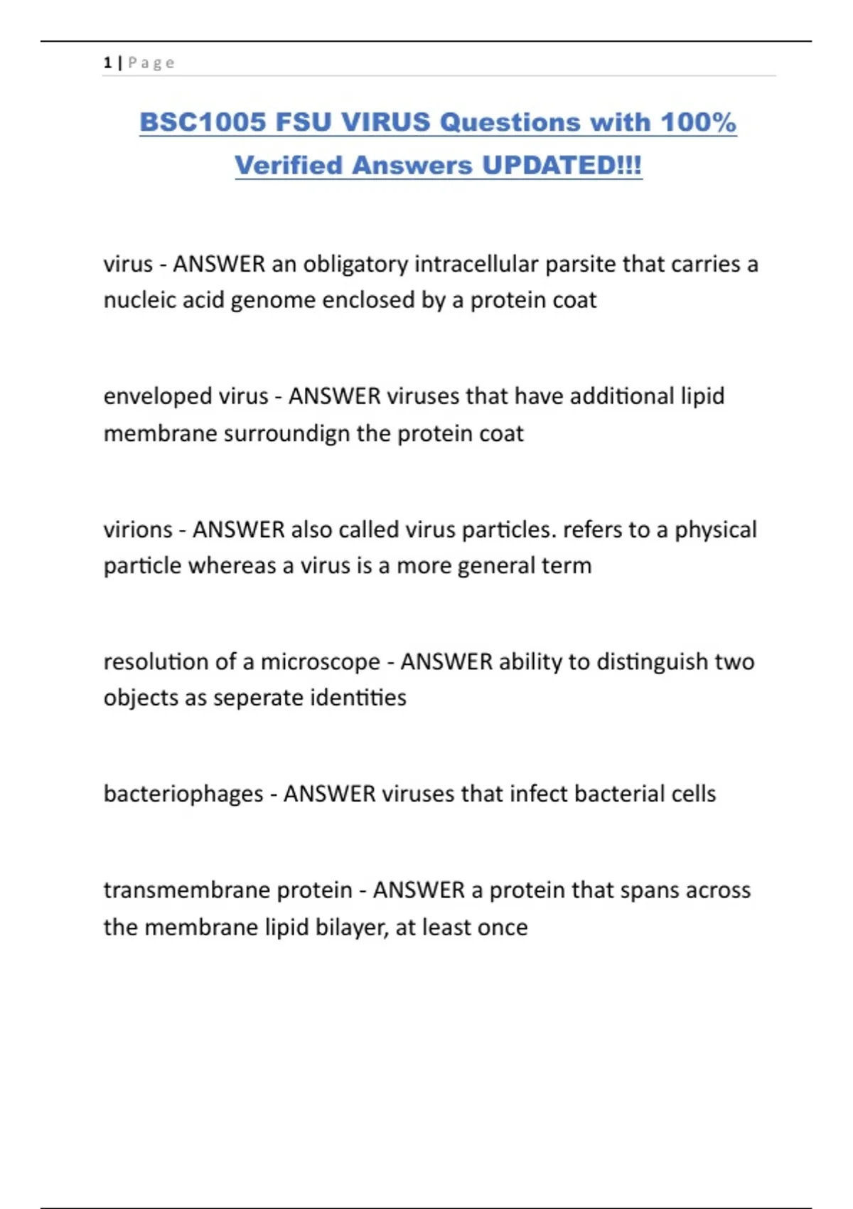 BSC1005 FSU VIRUS Questions with 100%
