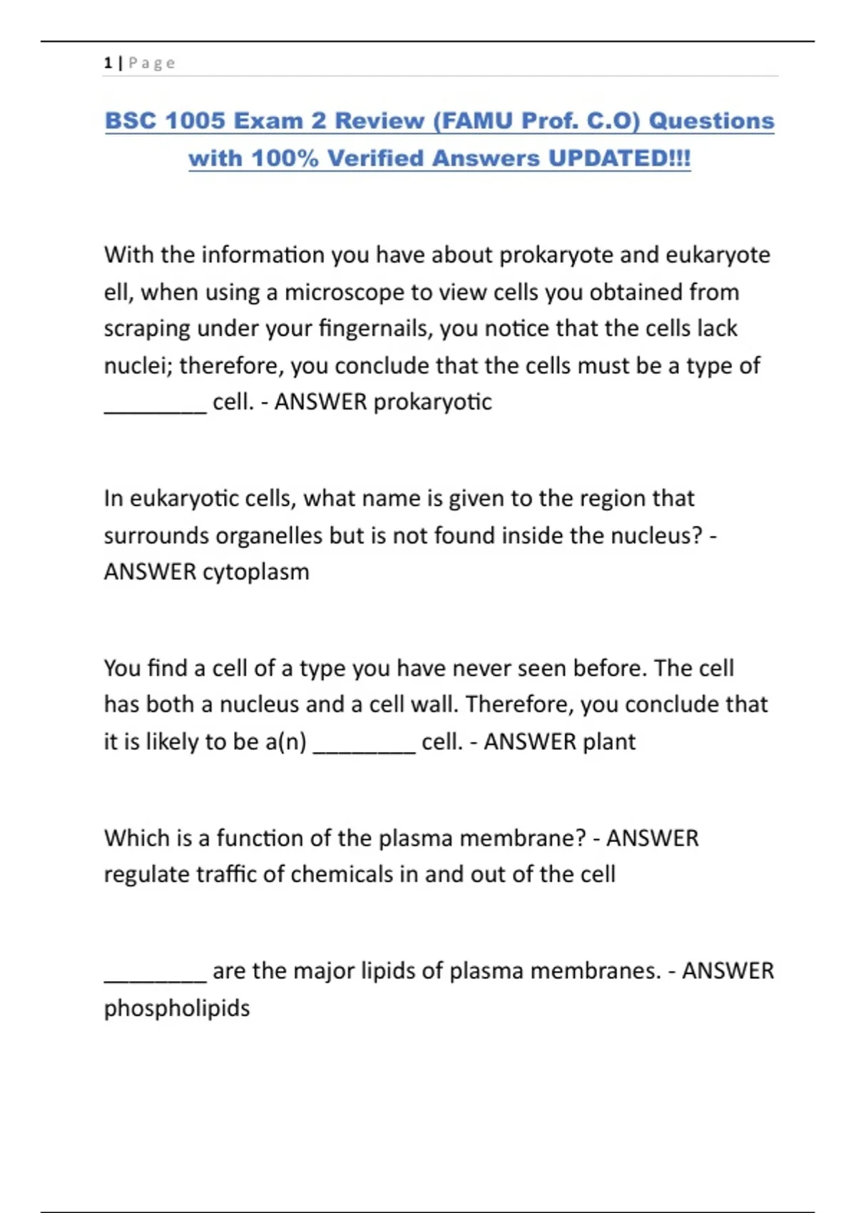 BSC 1005 Exam 2 Review (FAMU Prof. C.O) Questions