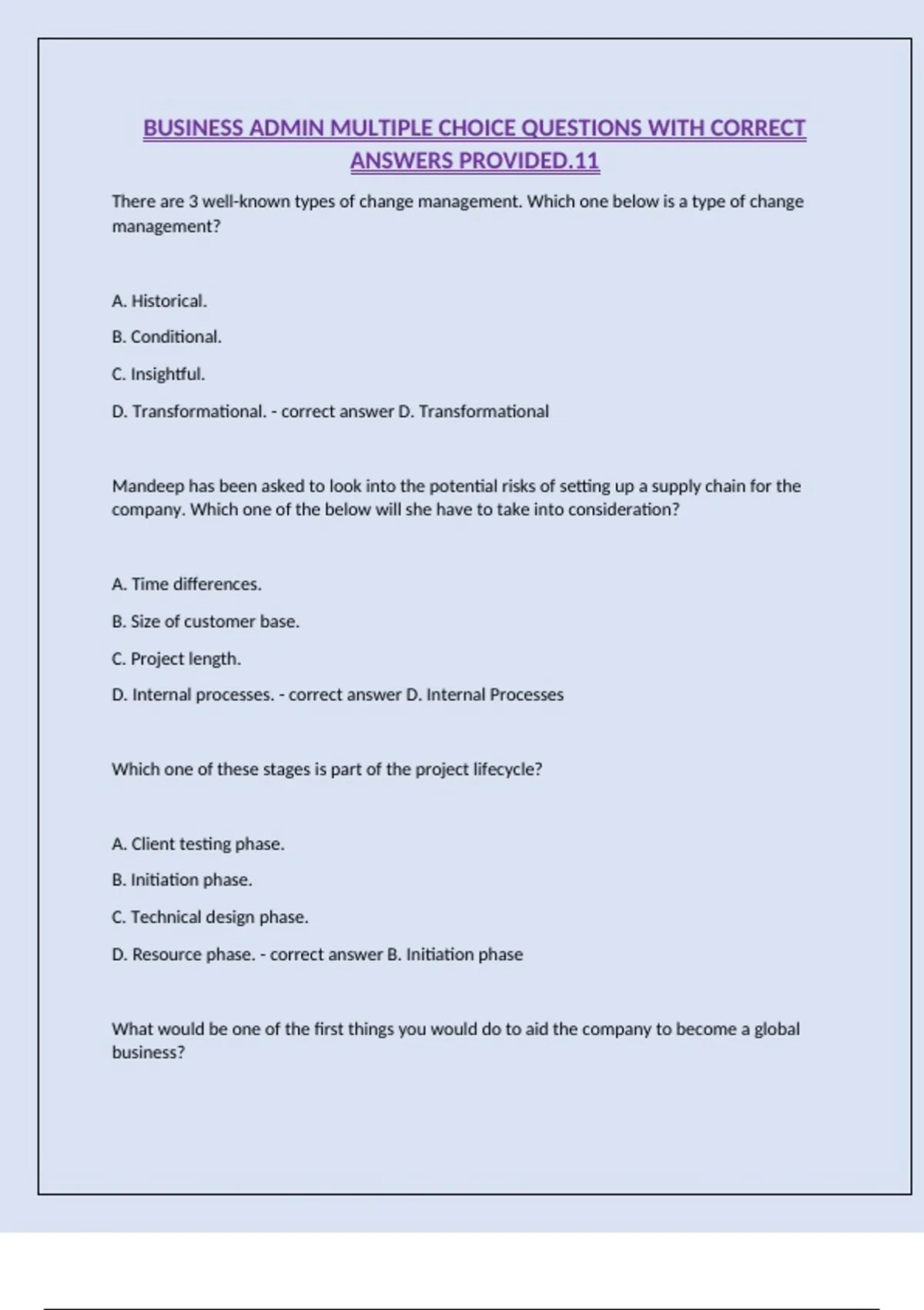 BUSINESS ADMIN MULTIPLE CHOICE QUESTIONS WITH CORRECT