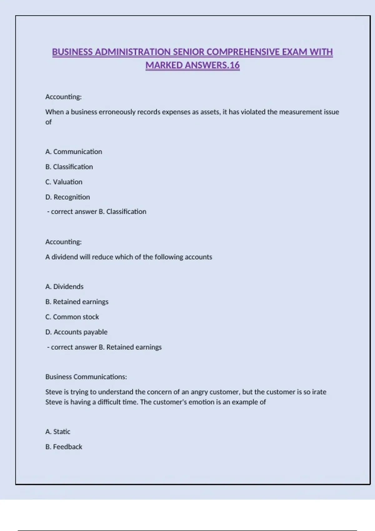 BUSINESS ADMINISTRATION SENIOR COMPREHENSIVE EXAM WITH