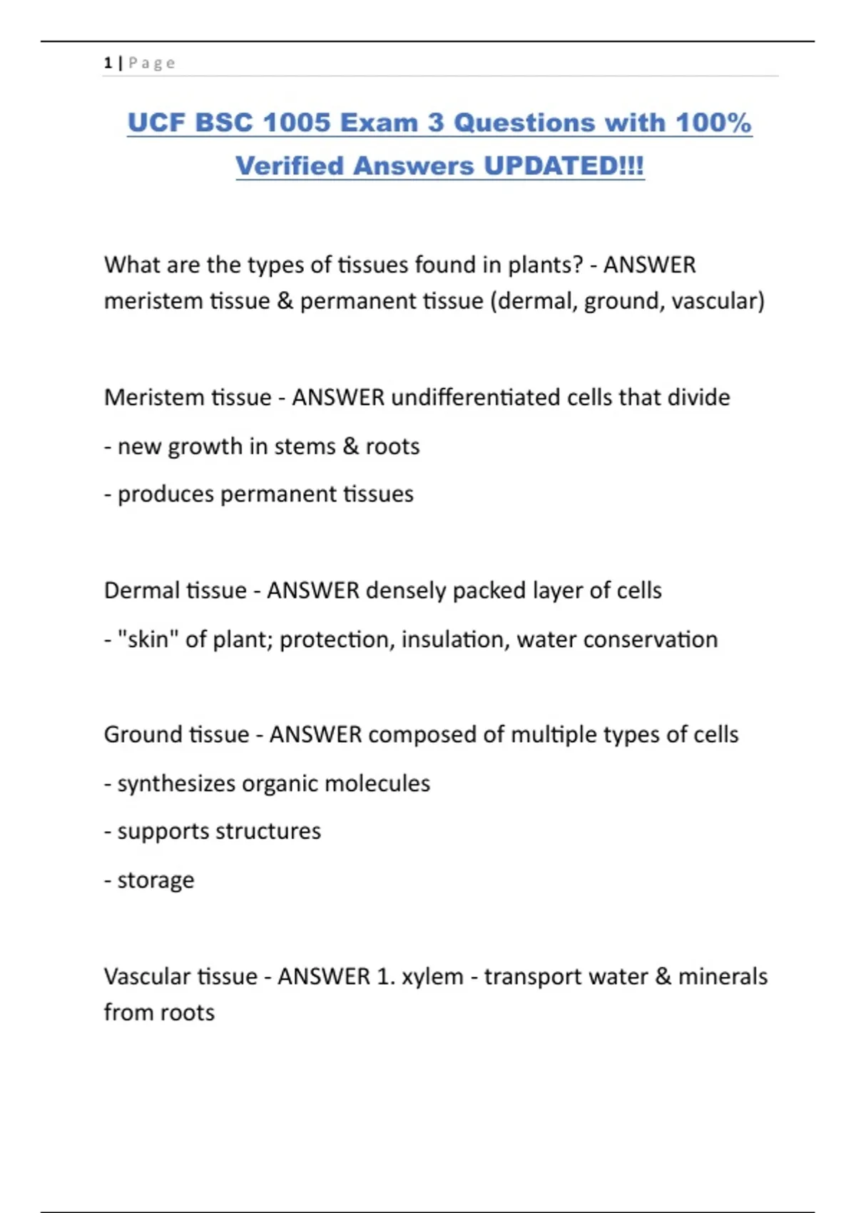 Vascular tissue - ANSWER 1. xylem - transport water & minerals