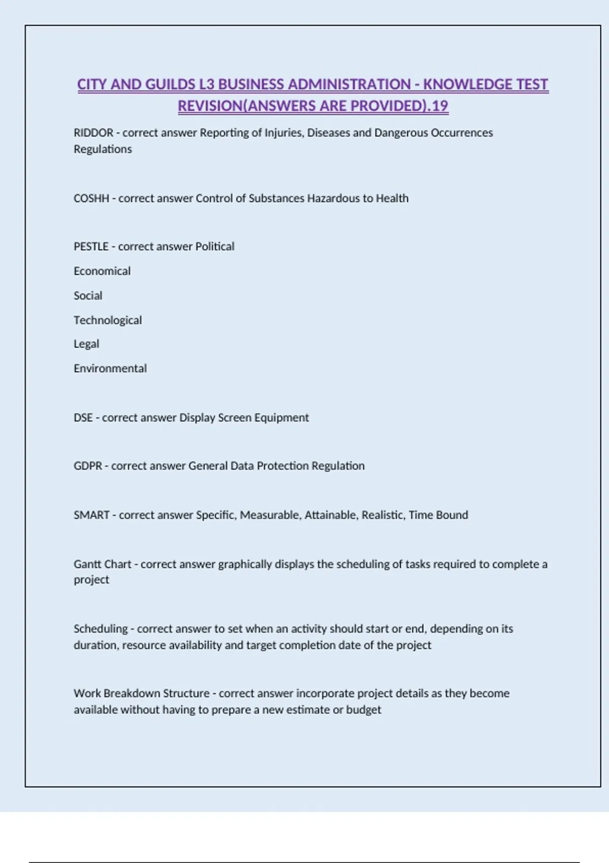 CITY AND GUILDS L3 BUSINESS ADMINISTRATION - KNOWLEDGE TEST