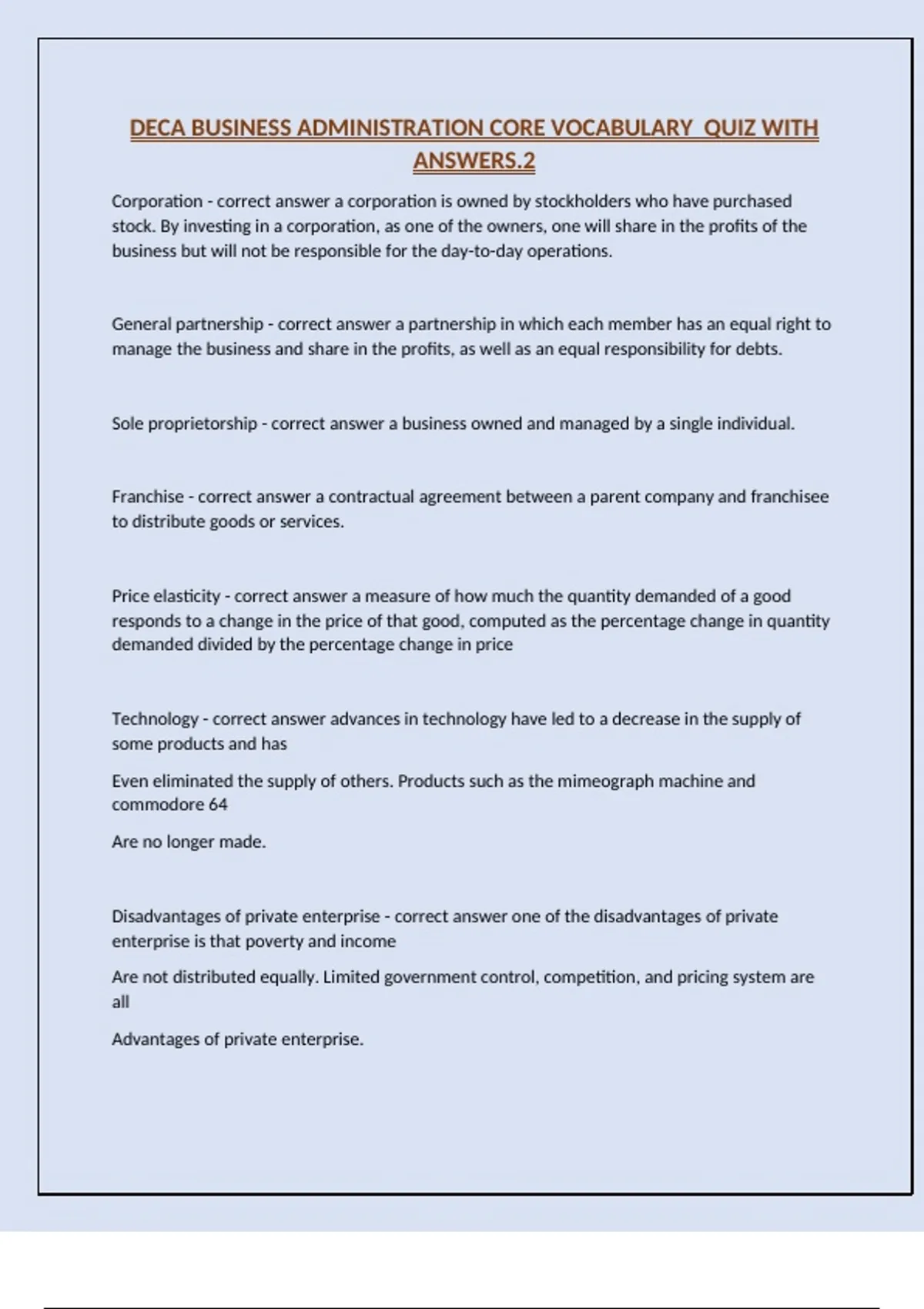 DECA BUSINESS ADMINISTRATION CORE VOCABULARY QUIZ WITH ANSWERS.2