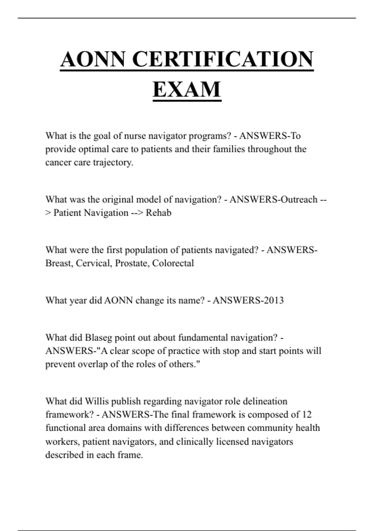 AONN CERTIFICATION EXAM QUESTIONS AND ANSWERS 2025