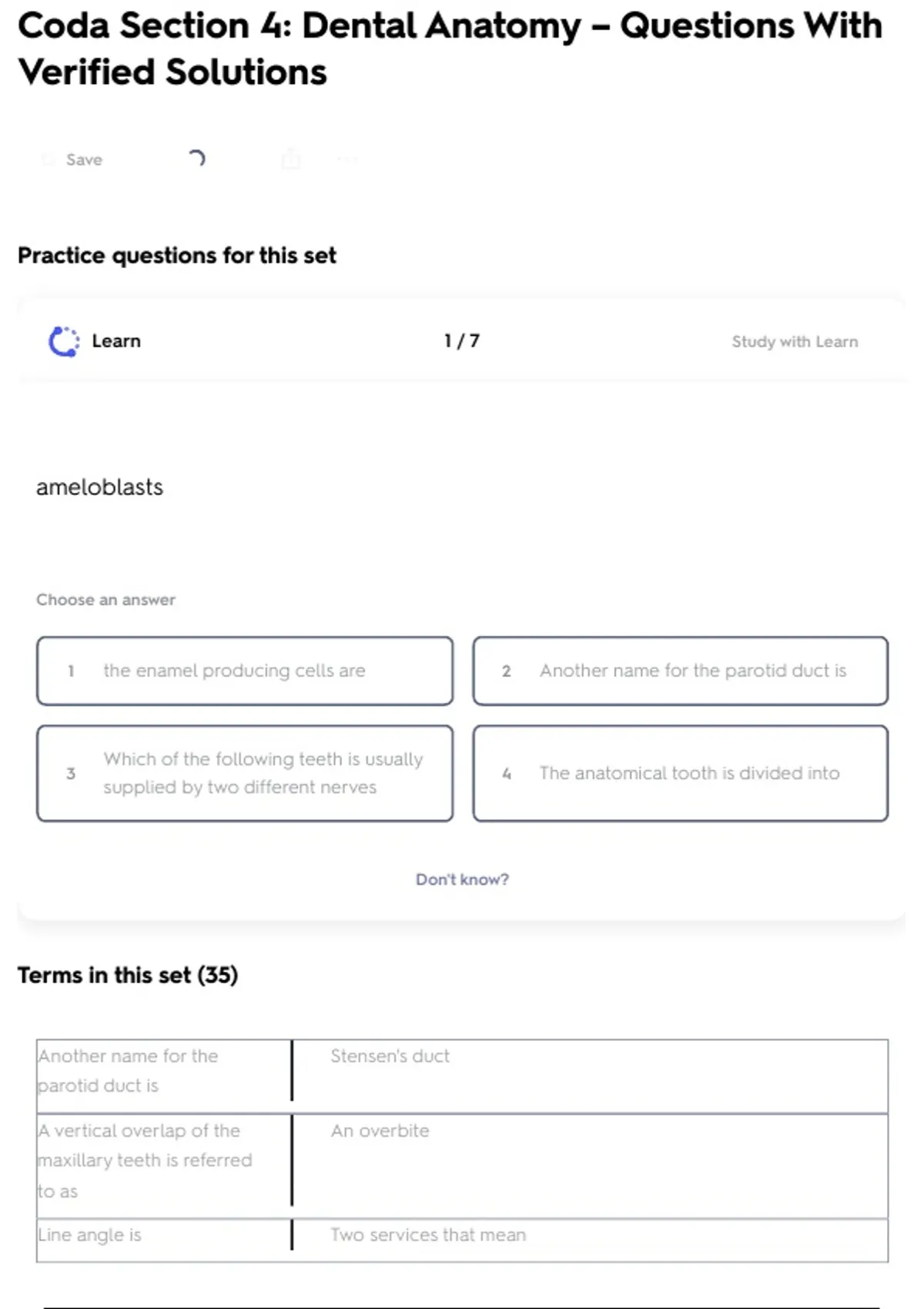 Coda Section 4: Dental Anatomy – Questions With Verified Solutions
