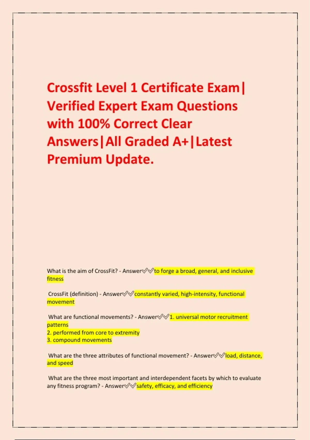 What is the aim of CrossFit? - Answer✅✅to forge a broad, general, and inclusive