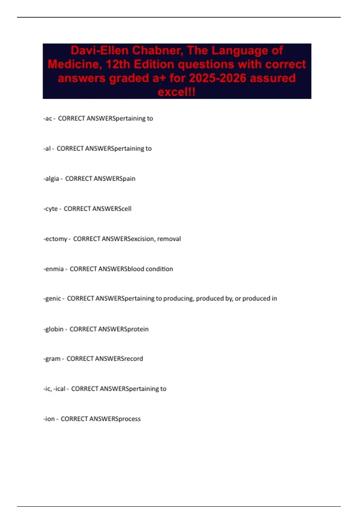 Exam of 2 pages for the course Language of Medicine 12th Edition Chabner at Language of Medicine 12th Edition Chabner (D)