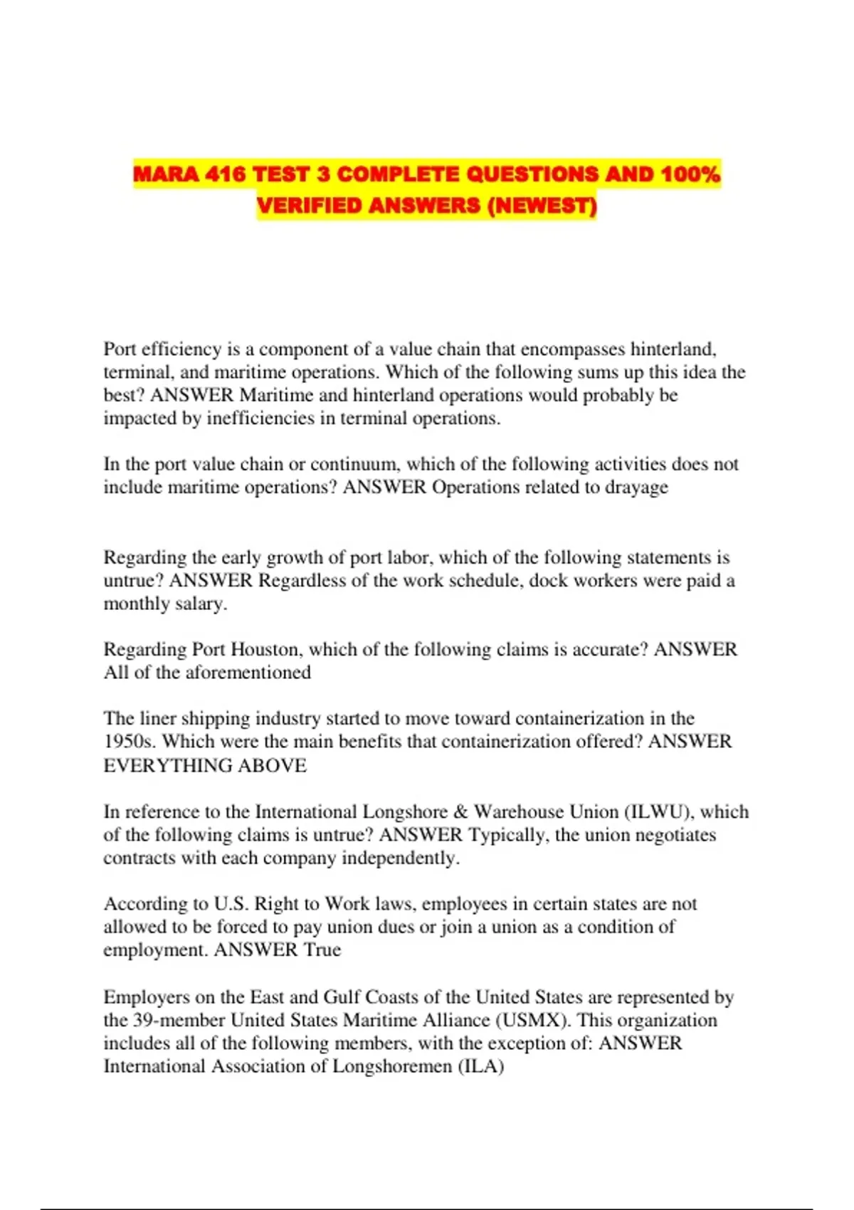 MARA 416 TEST 3 COMPLETE QUESTIONS AND 100%