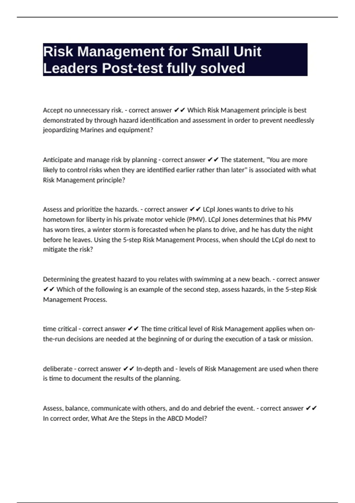 Accept no unnecessary risk. - correct answer ✔✔ Which Risk Management principle is best