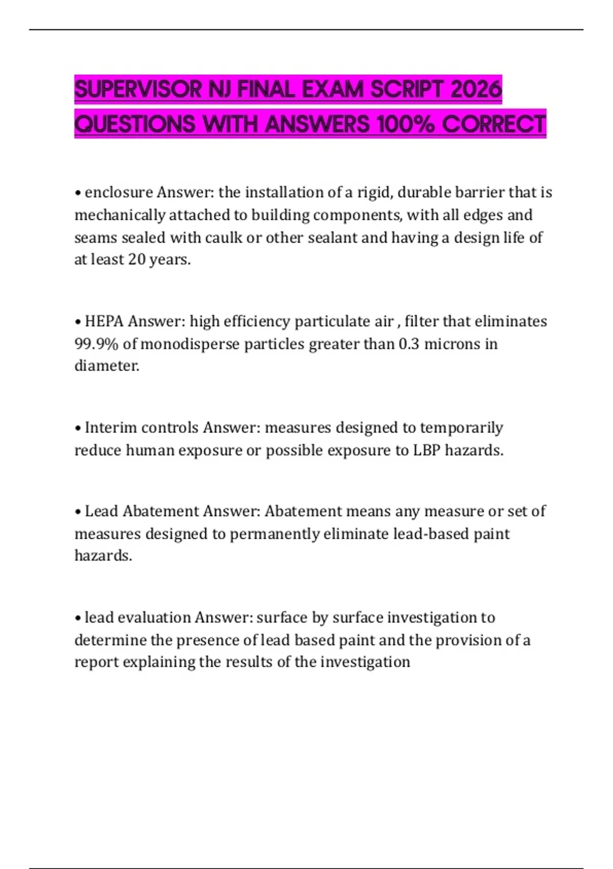 SUPERVISOR NJ FINAL EXAM SCRIPT 2026 QUESTIONS WITH ANSWERS 100% CORRECT