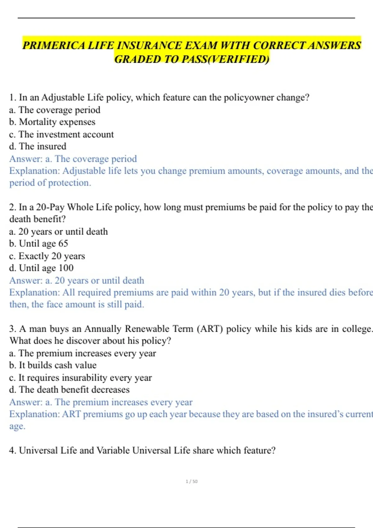 Explanation: All required premiums are paid within 20 years, but if the insured dies before