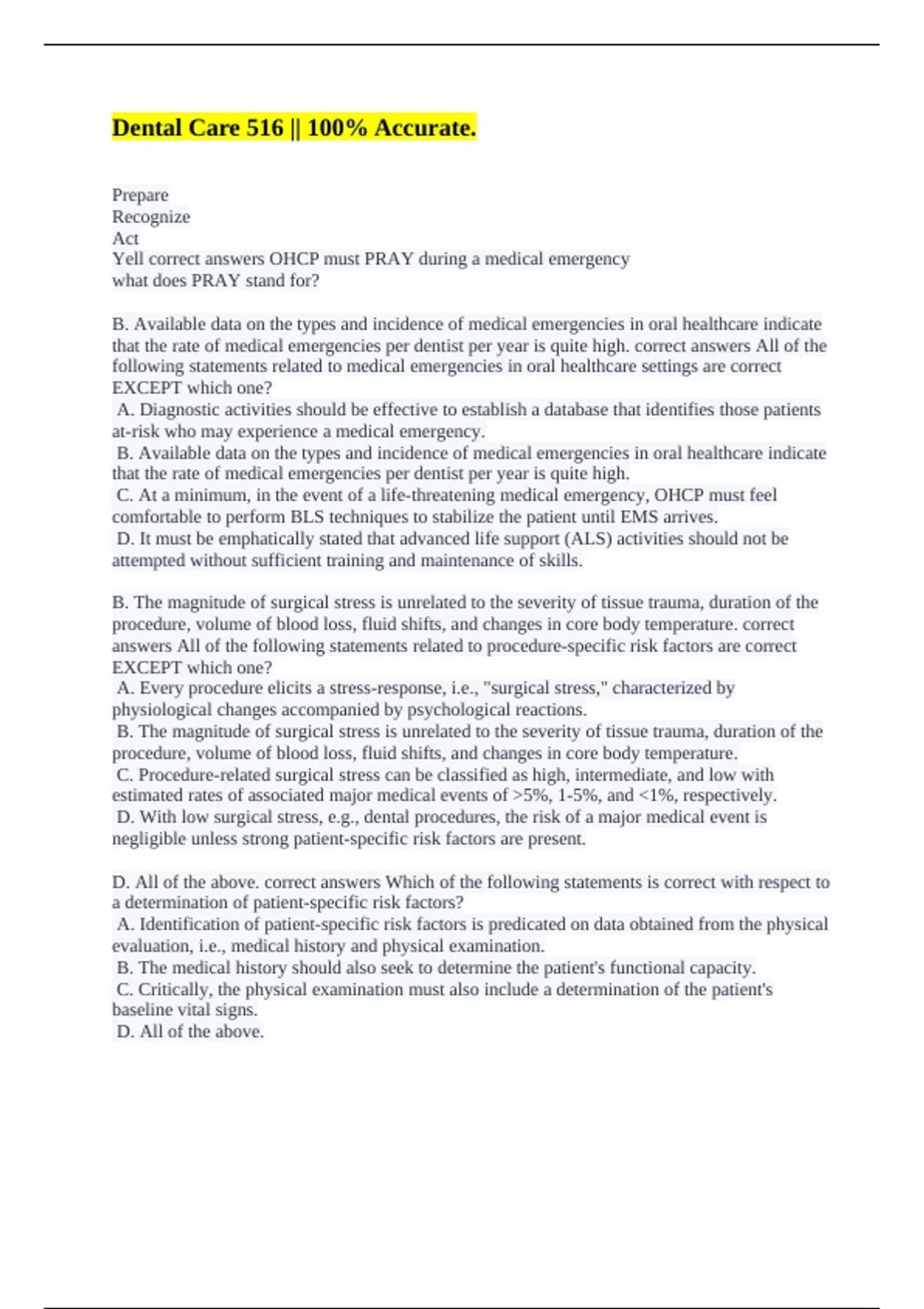 D. All of the above. correct answers Being prepared to respond to a major medical event in oral