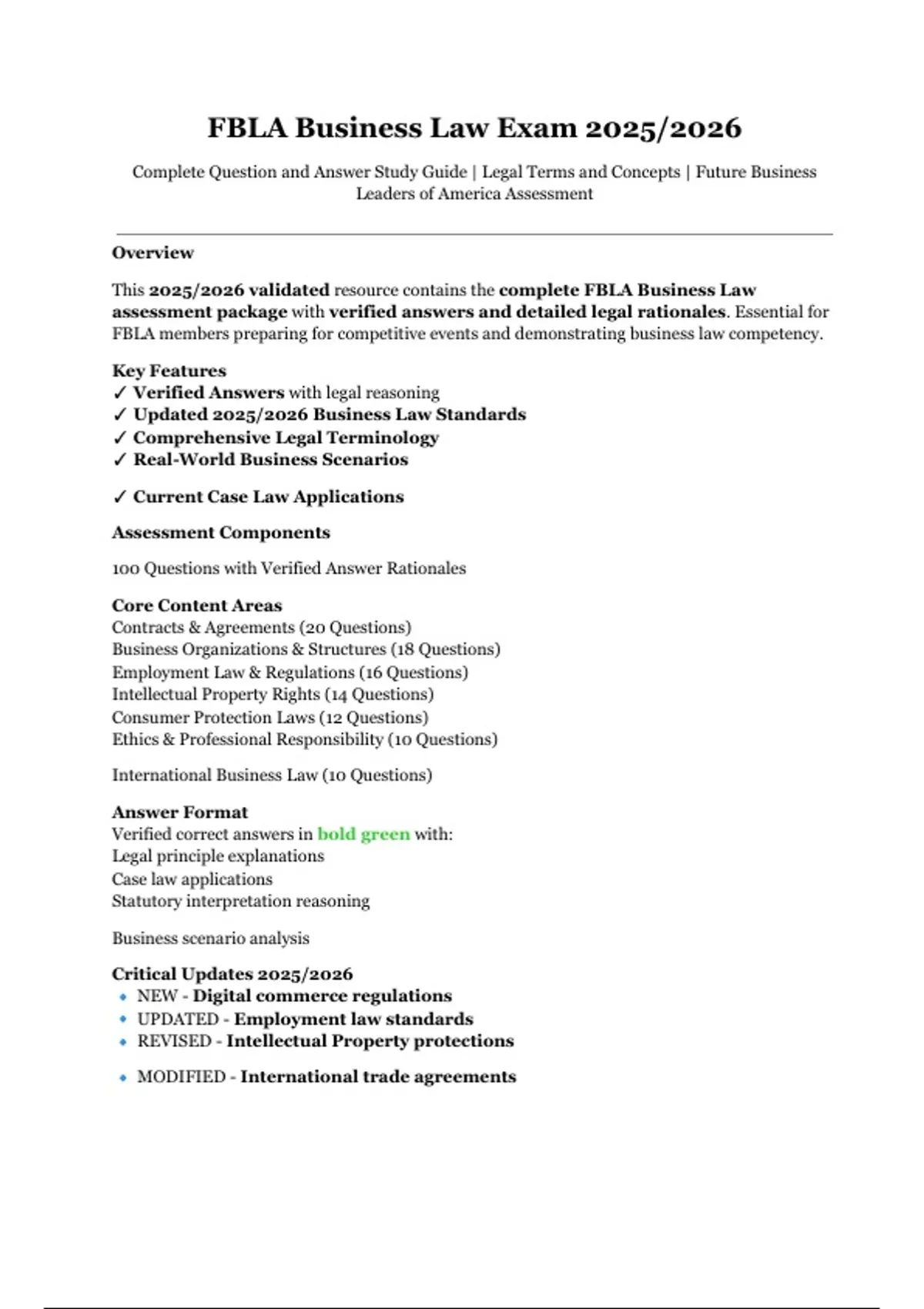 This 2025/2026 validated resource contains the complete FBLA Business Law