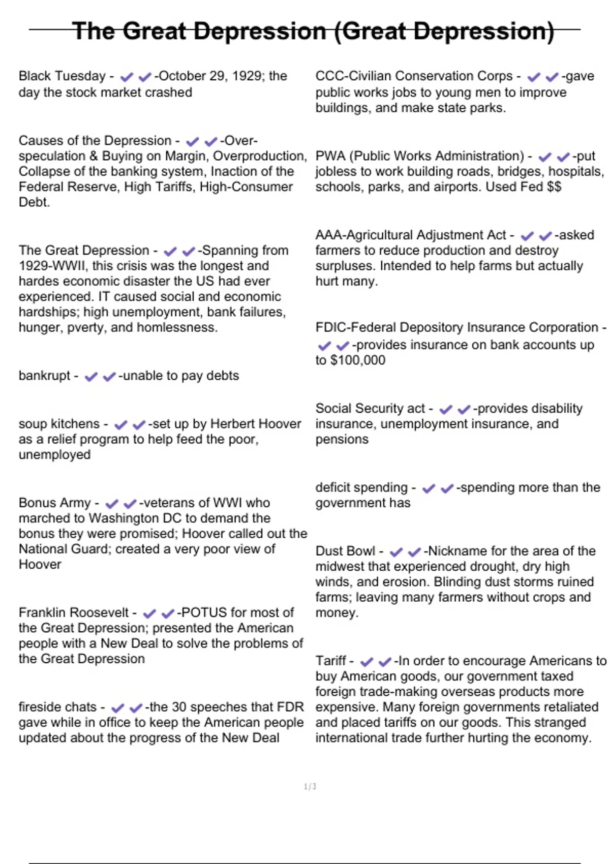 Black Tuesday - -October 29, 1929; the CCC-Civilian Conservation Corps - -gave