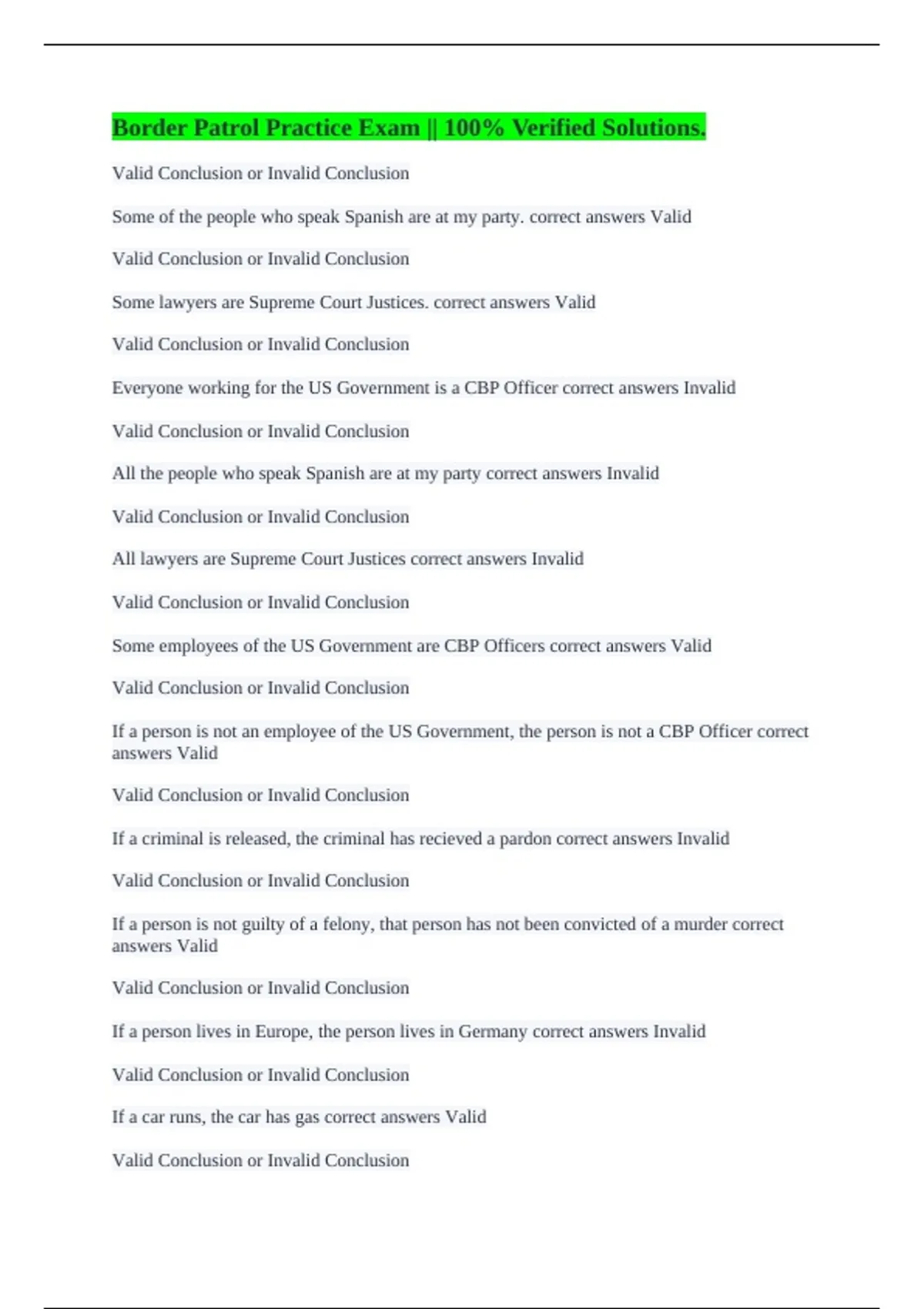 Valid Conclusion or Invalid Conclusion