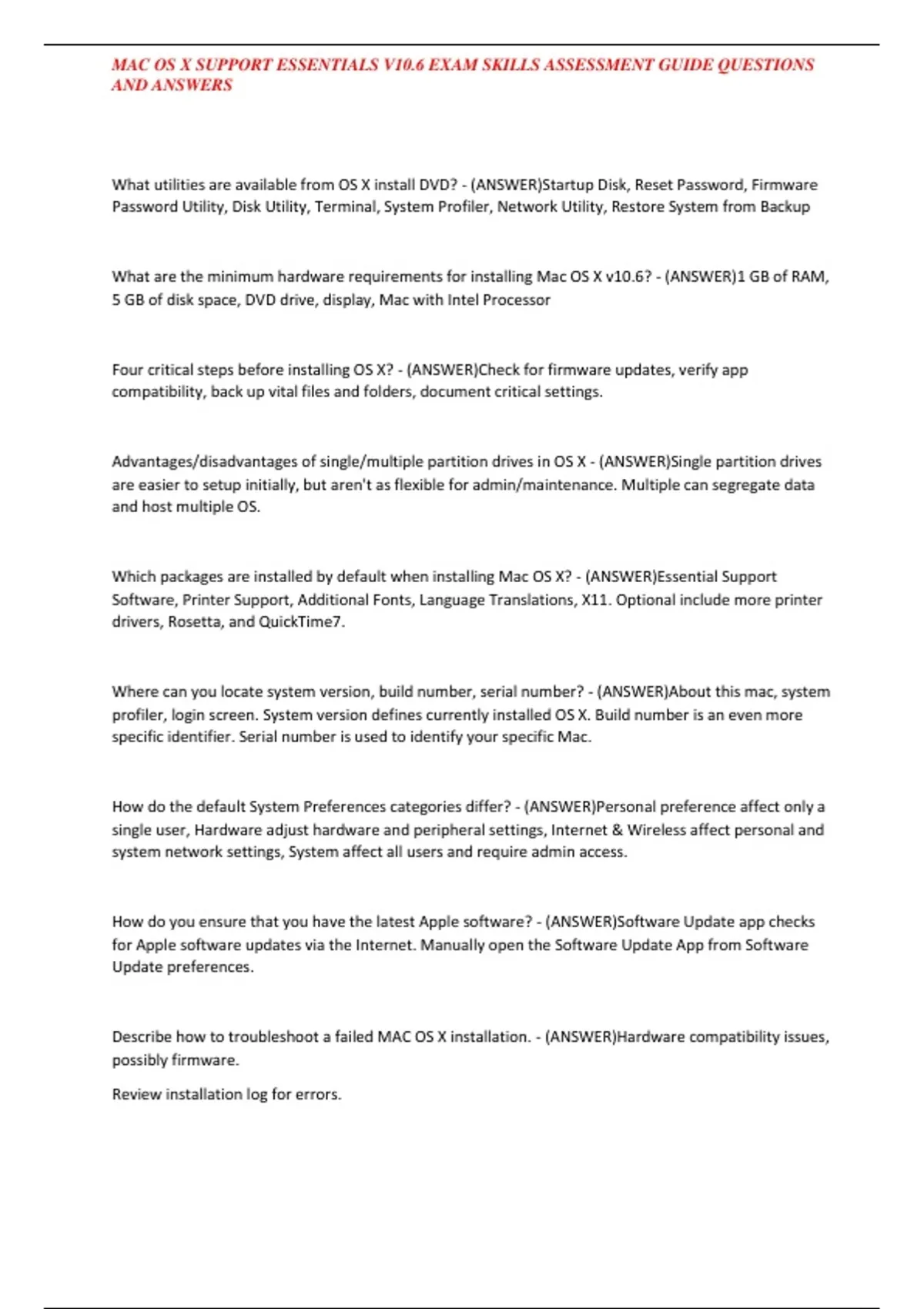 MAC OS X SUPPORT ESSENTIALS V10.6 EXAM SKILLS ASSESSMENT GUIDE QUESTIONS AND ANSWERS