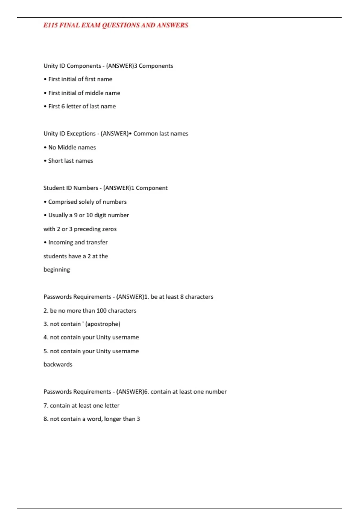 , E115 FINAL EXAM QUESTIONS AND ANSWERS
