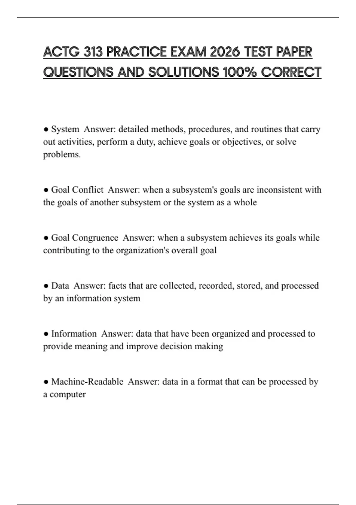 ACTG 313 PRACTICE EXAM 2026 TEST PAPER QUESTIONS AND SOLUTIONS 100% CORRECT