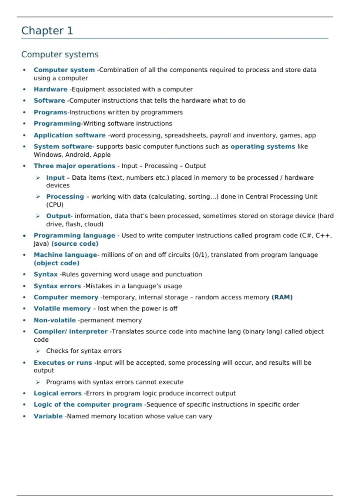 Output- information, data that’s been processed, sometimes stored on storage device (hard