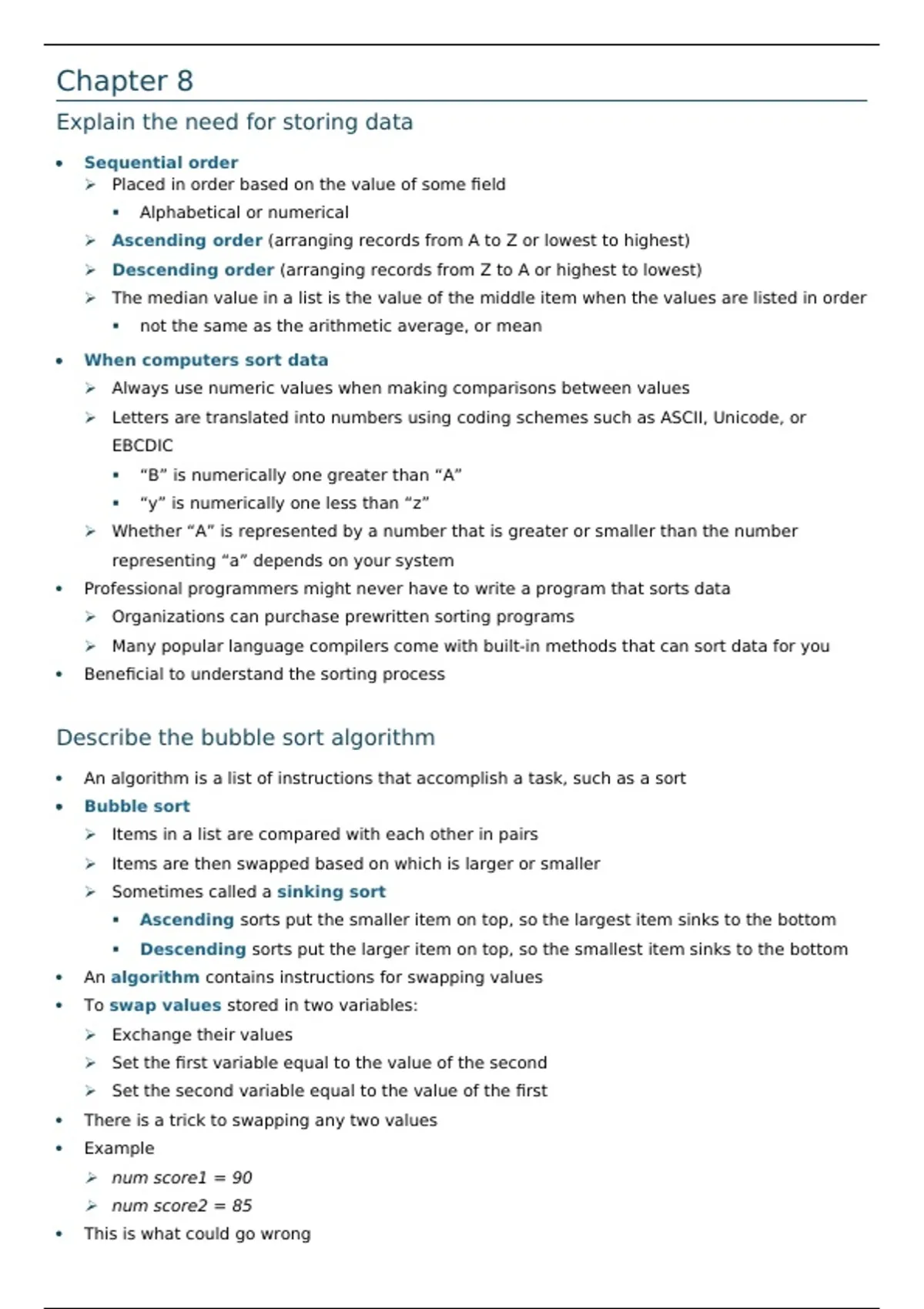 An algorithm is a list of instructions that accomplish a task, such as a sort