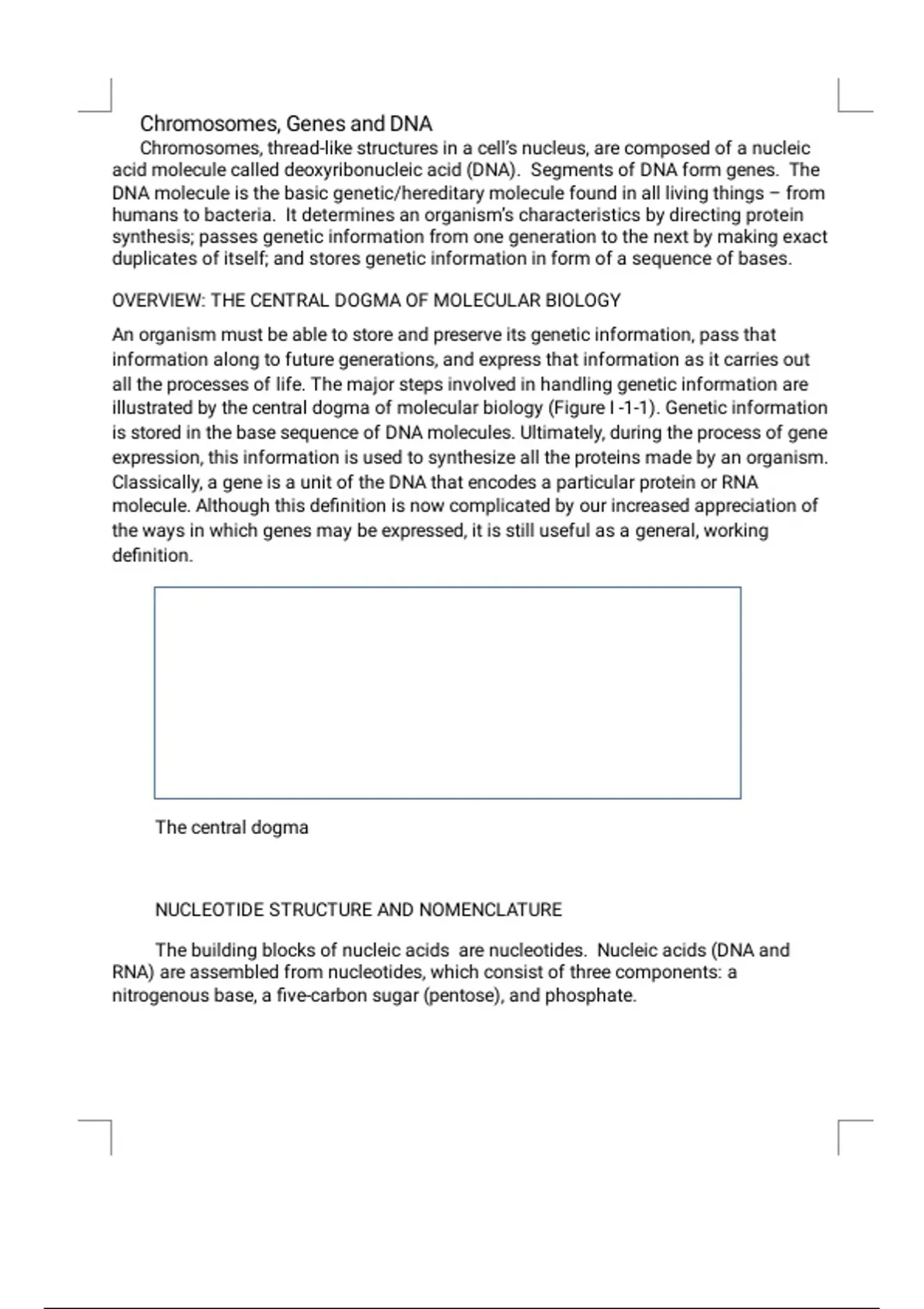 illustrated by the central dogma of molecular biology (Figure I -1-1). Genetic information