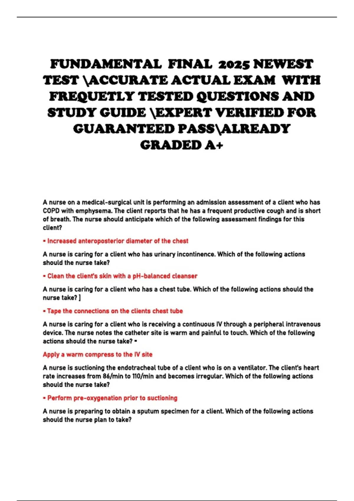 FUNDAMENTAL FINAL 2025 NEWEST TEST ACCURATE ACTUAL EXAM WITH FREQUETLY TESTED QUESTIONS AND STUDY GUIDE EXPERT VERIFIED FOR GUARANTEED PASSALREADY GRADED A+