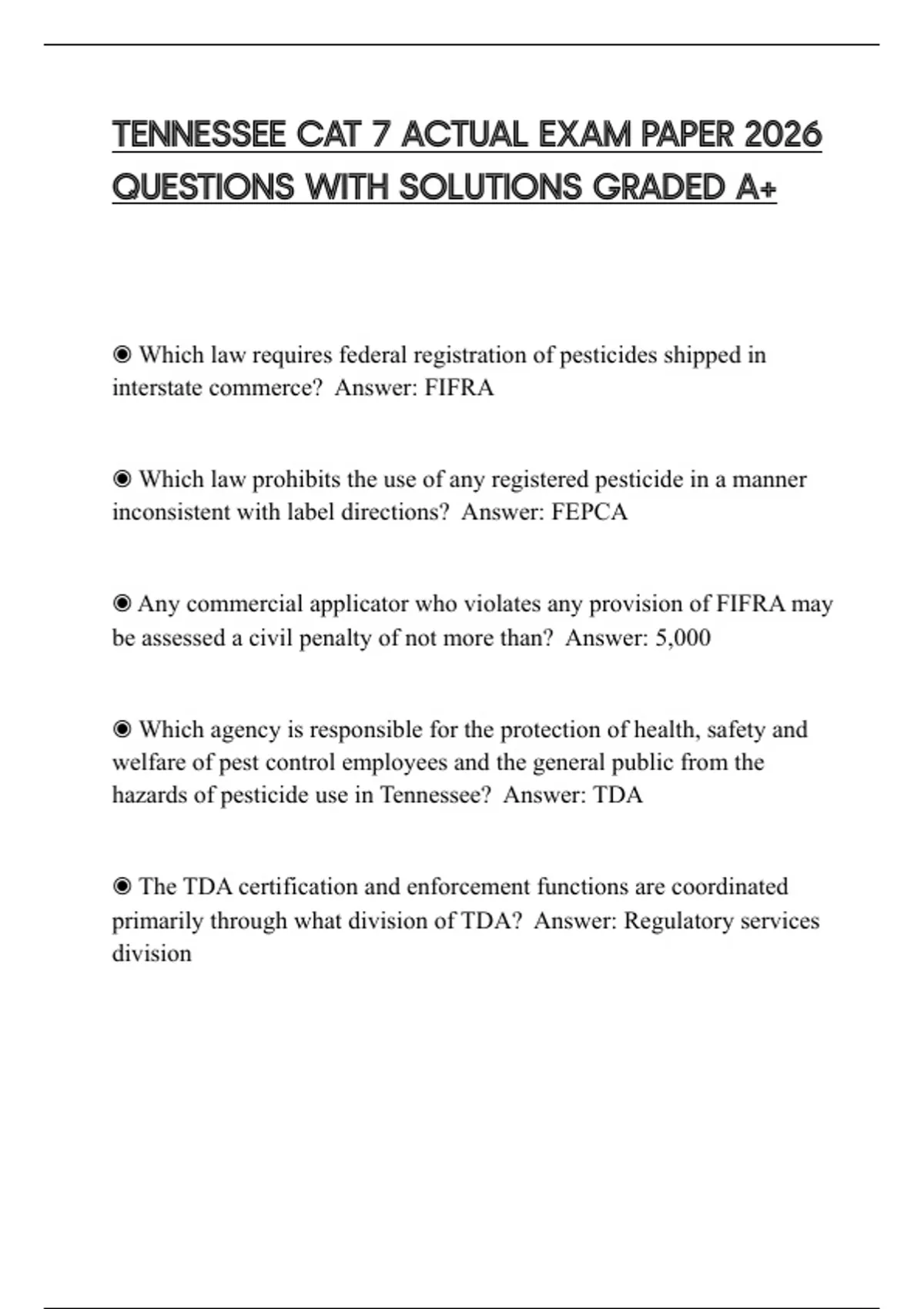 TENNESSEE CAT 7 ACTUAL EXAM PAPER 2026 QUESTIONS WITH SOLUTIONS GRADED A+