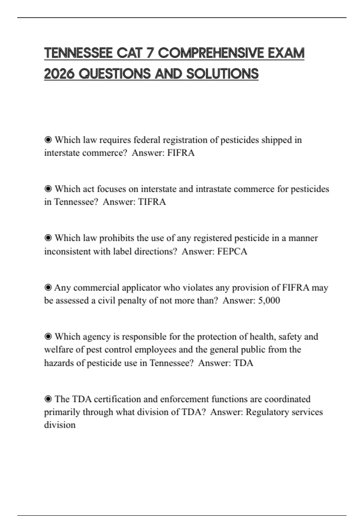 ◉ Which law requires federal registration of pesticides shipped in