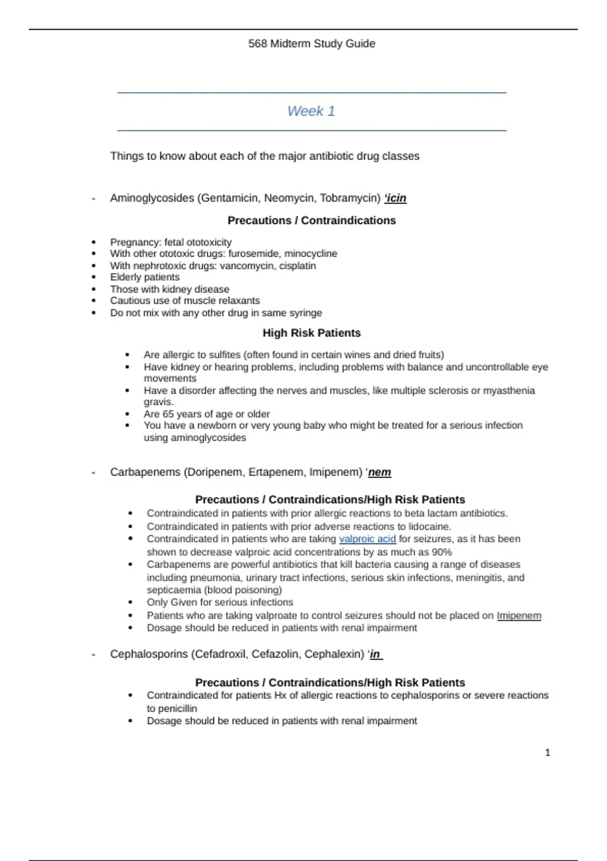 , 568 Midterm Study Guide