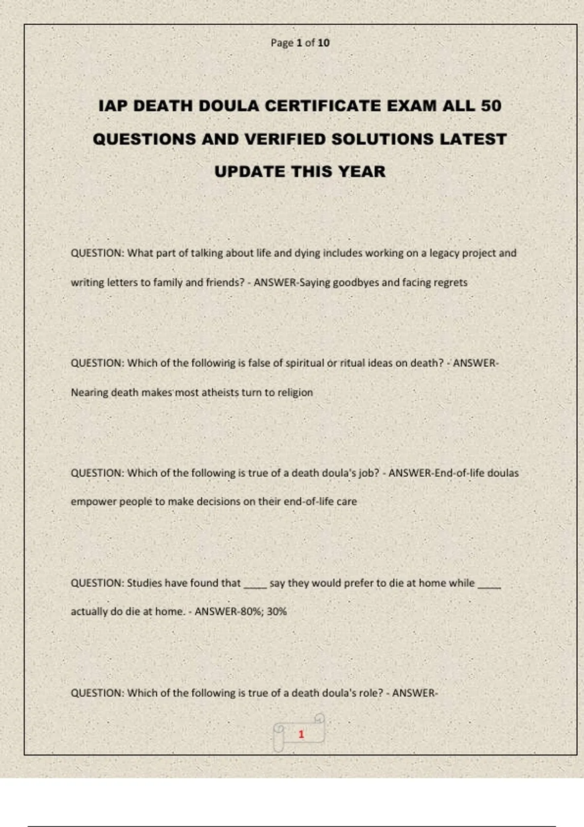 IAP DEATH DOULA CERTIFICATE EXAM ALL 50