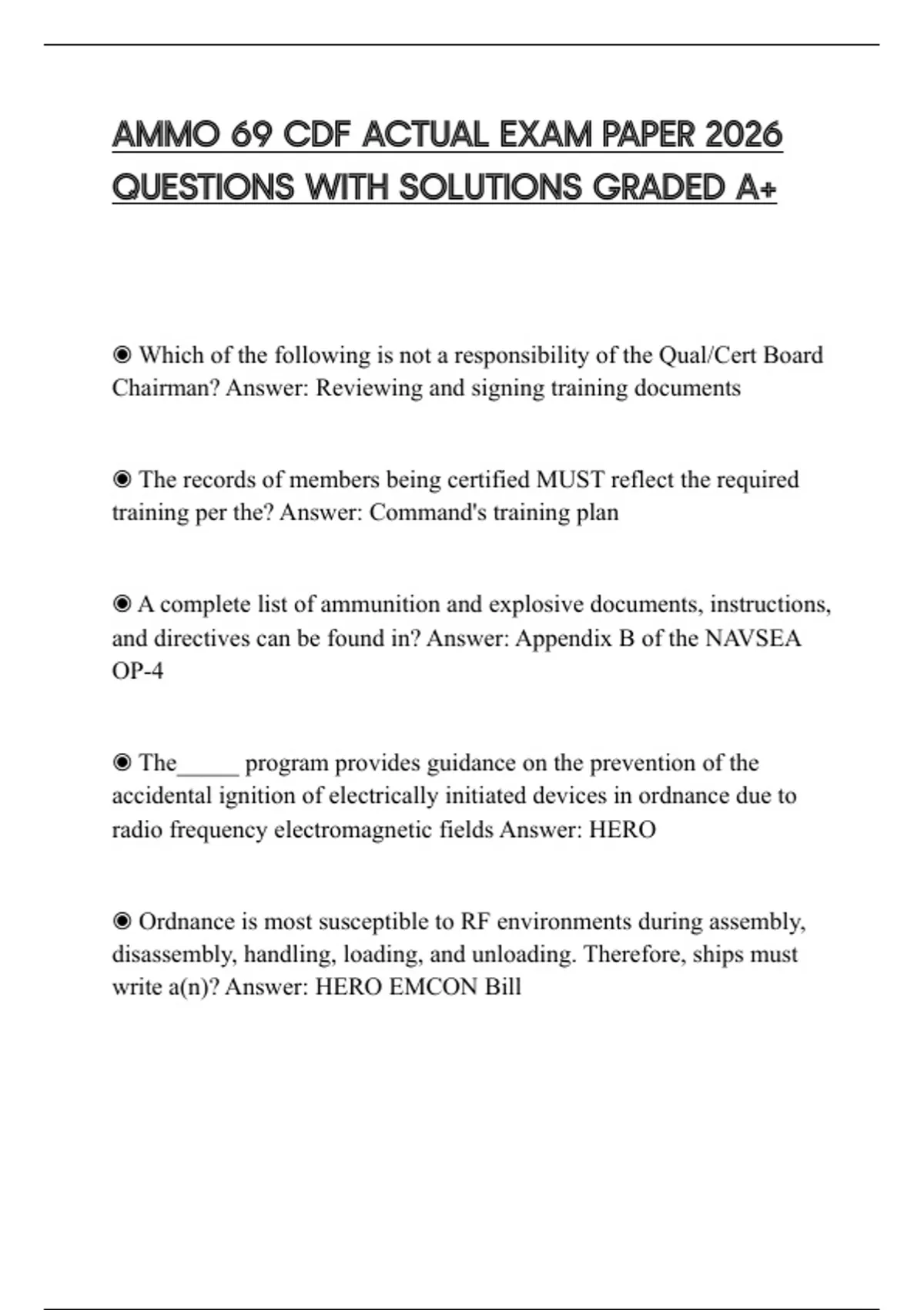 AMMO 69 CDF ACTUAL EXAM PAPER 2026 QUESTIONS WITH SOLUTIONS GRADED A+