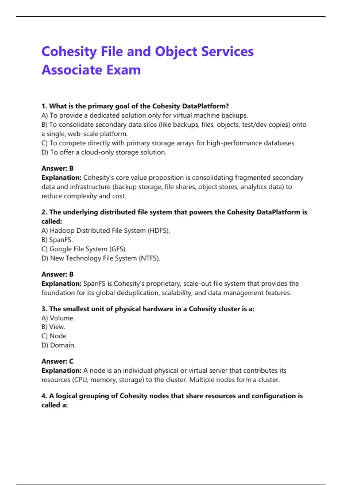 Explanation: SpanFS is Cohesity's proprietary, scale-out file system that provides the
