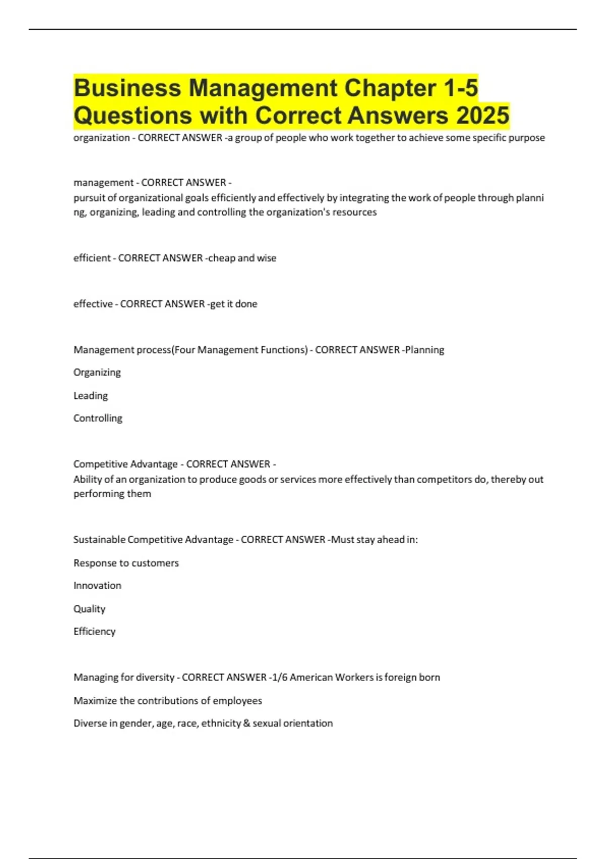 Business Management Chapter 1-5 Questions with Correct Answers 2025.