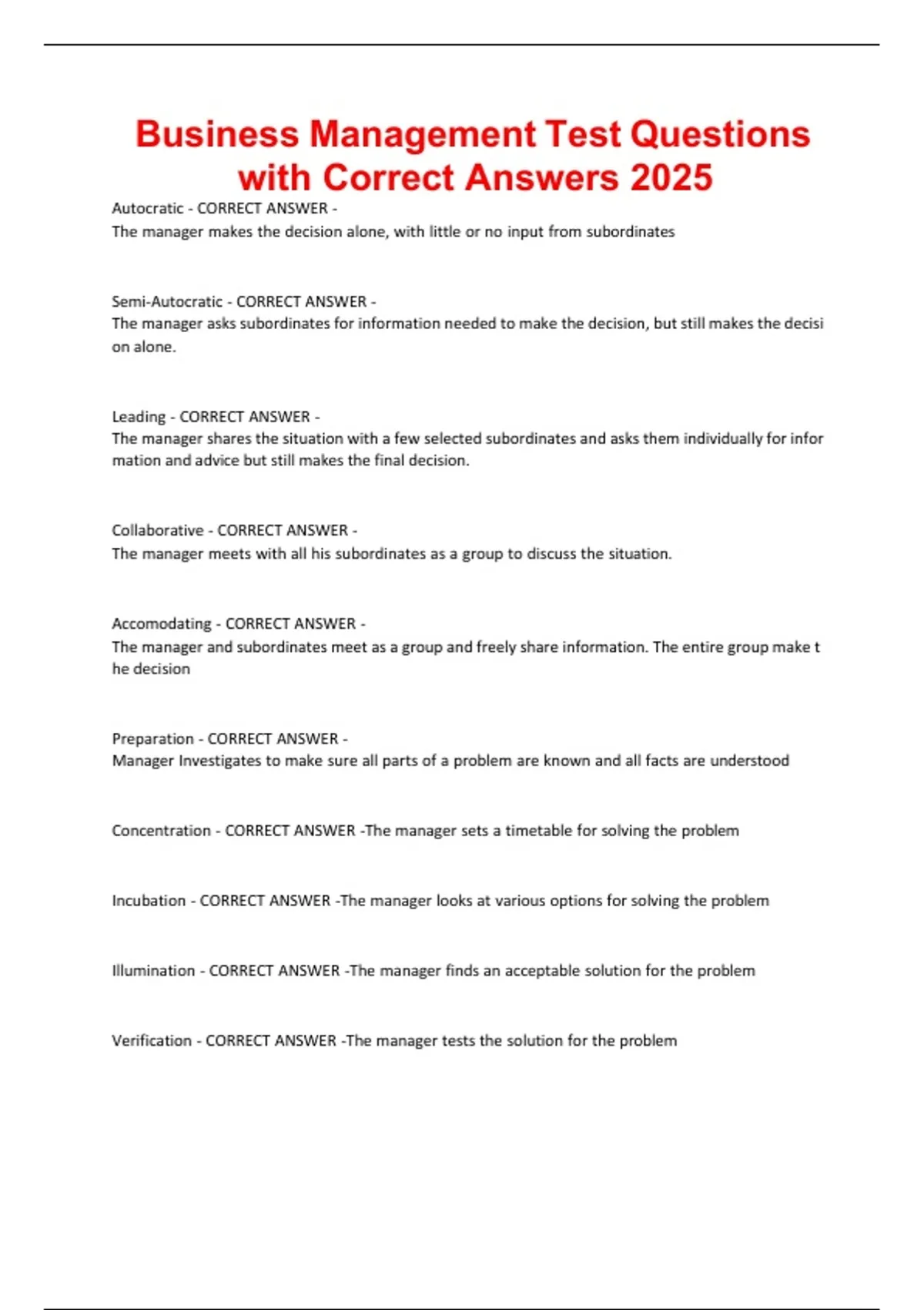 Business Management Test Questions with Correct Answers 2025.