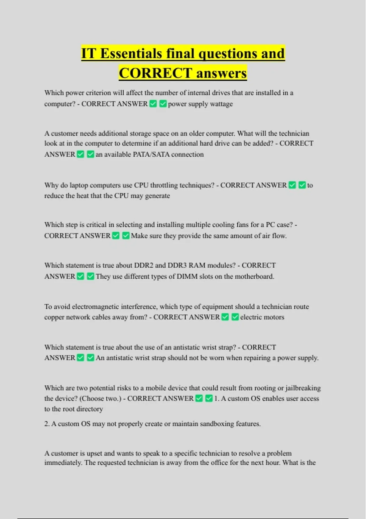 Why do laptop computers use CPU throttling techniques? - CORRECT ANSWER to