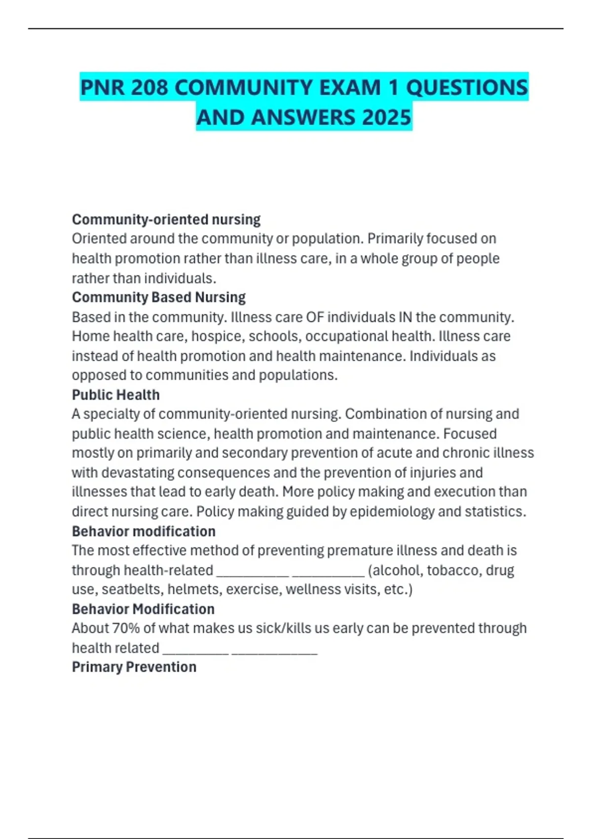 PNR 208 COMMUNITY EXAM 1 QUESTIONS