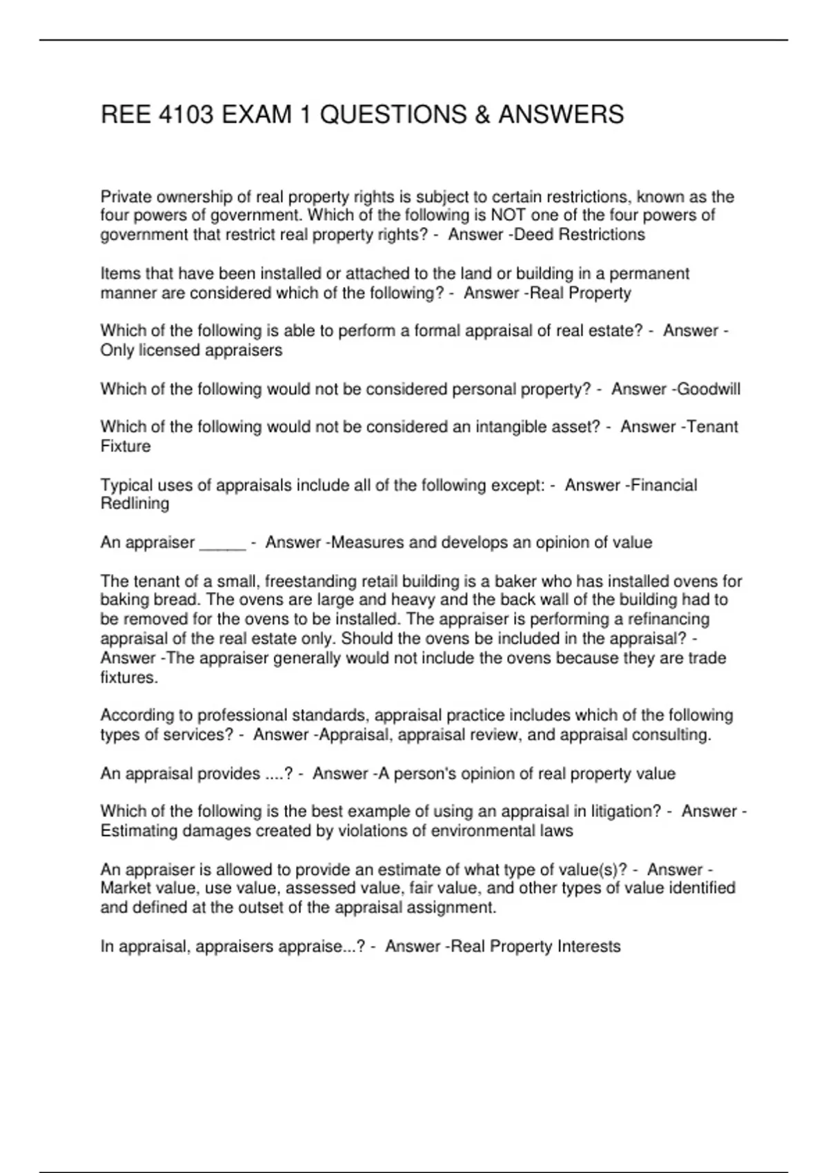 REE 4103 EXAM 1 QUESTIONS & ANSWERS