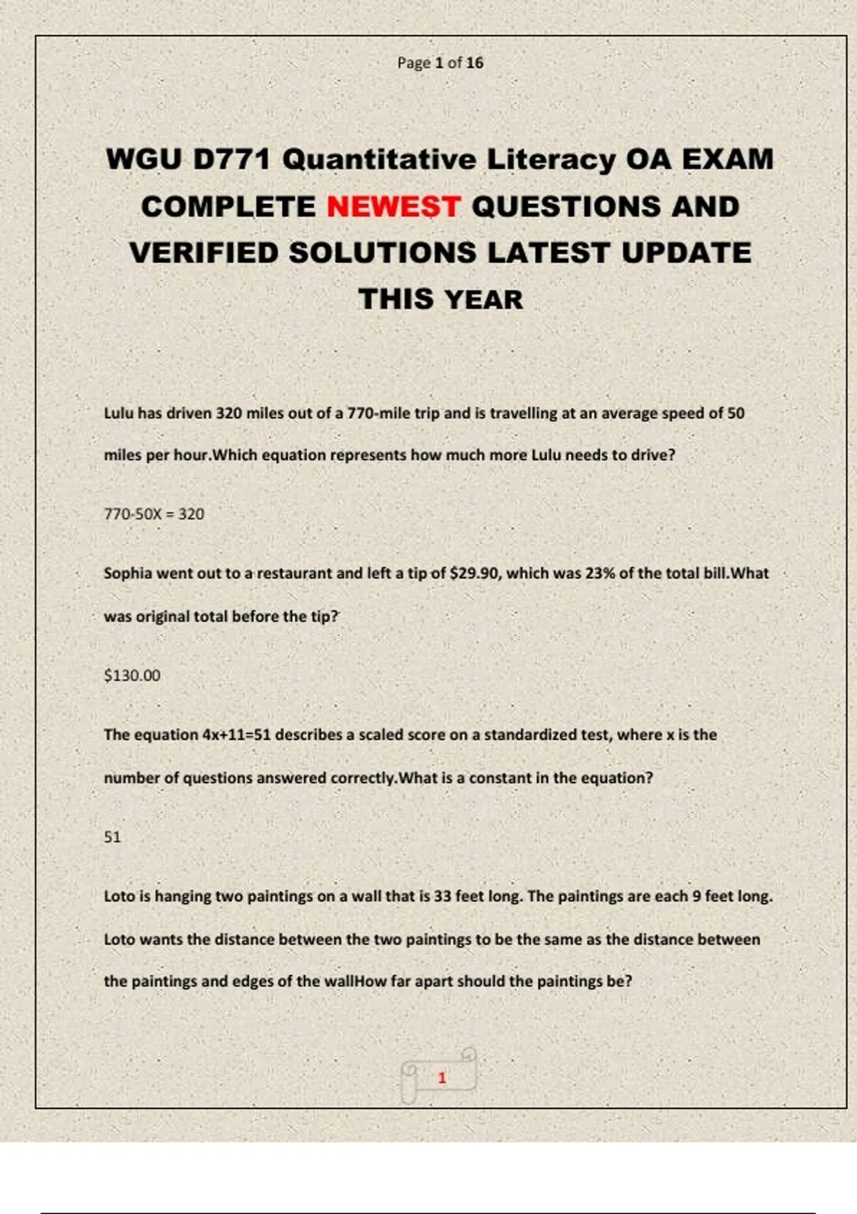 WGU D771 Quantitative Literacy OA EXAM