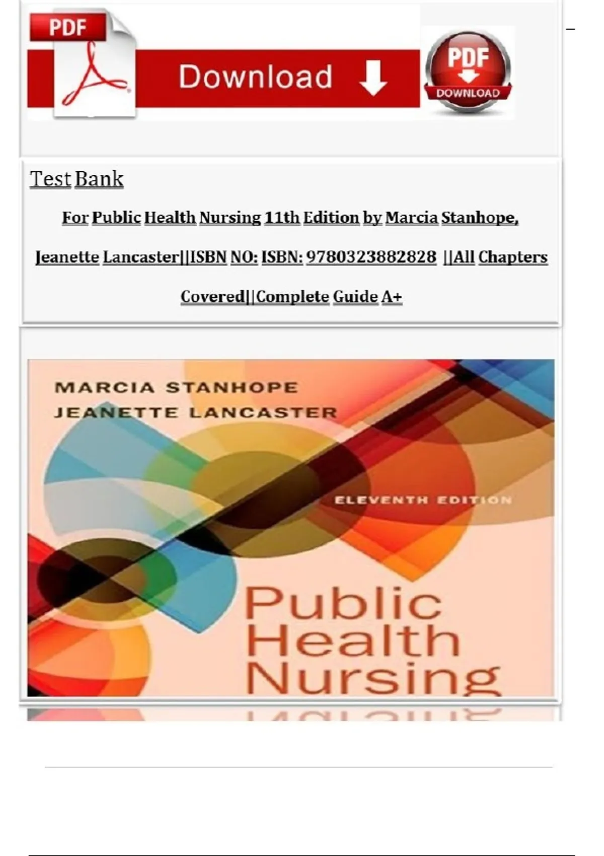 Test Bank Complete_ Public Health Nursing: Population-Centered Health Care In The Community 11th Edition, (2024) By Marcia Stanhope & Jeanette Lancaster| All Chapter 1-20| Latest Version With Well Detailed And Verified Answers| Grade A+