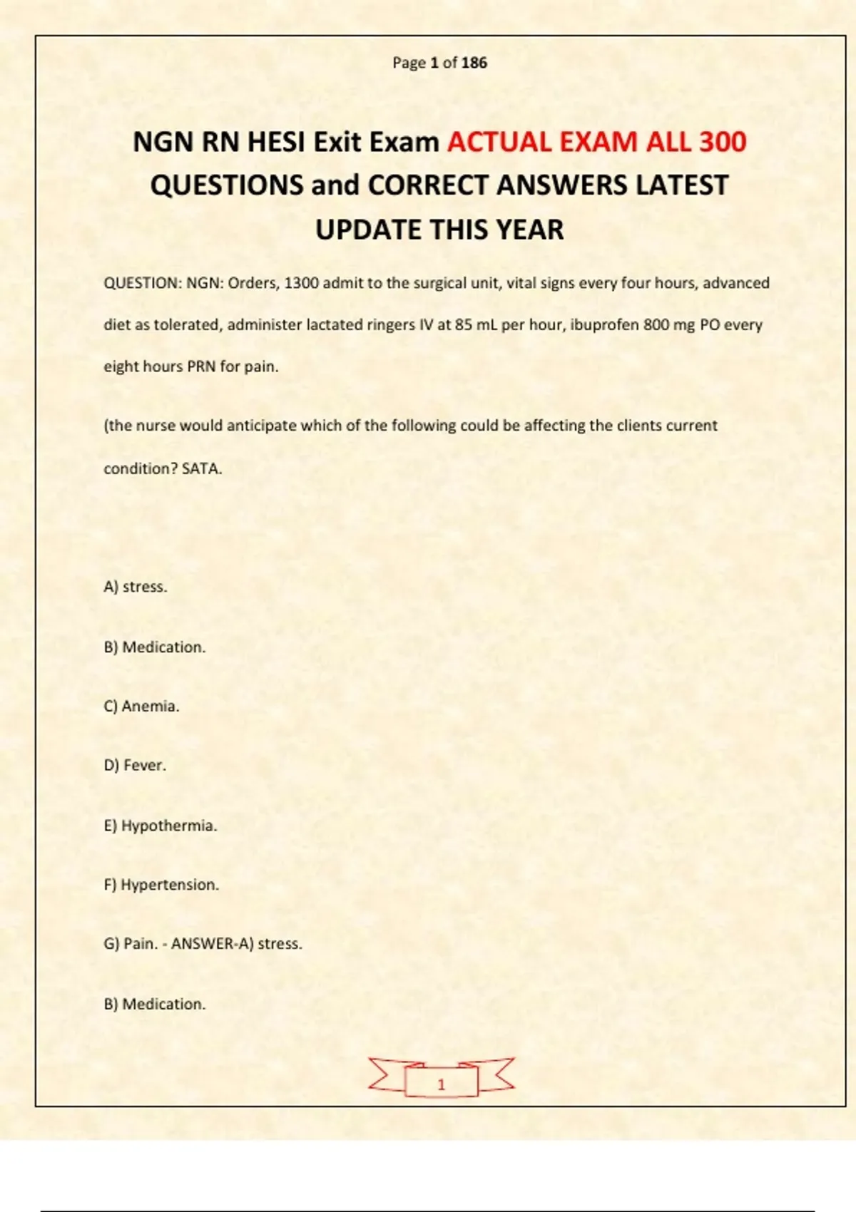 NGN RN HESI Exit Exam ACTUAL EXAM ALL 300