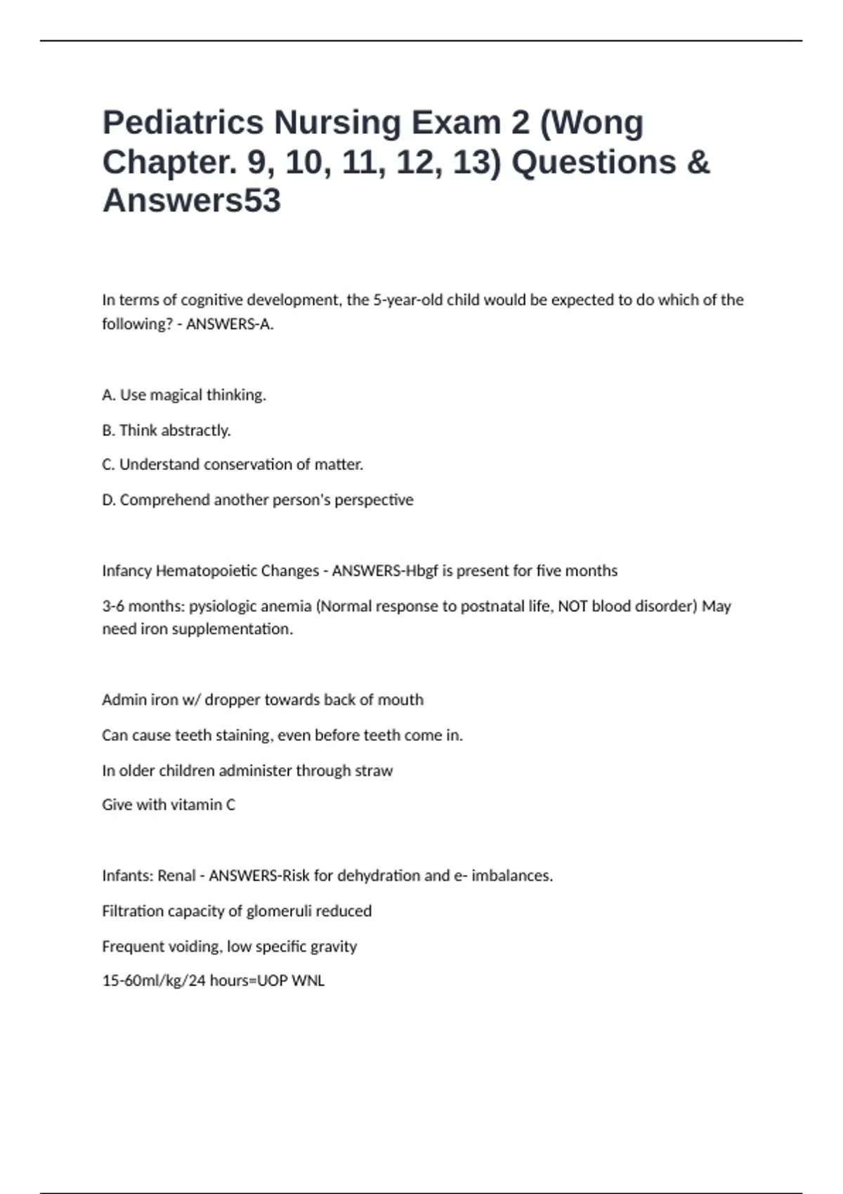 Infancy Hematopoietic Changes - ANSWERS-Hbgf is present for five months